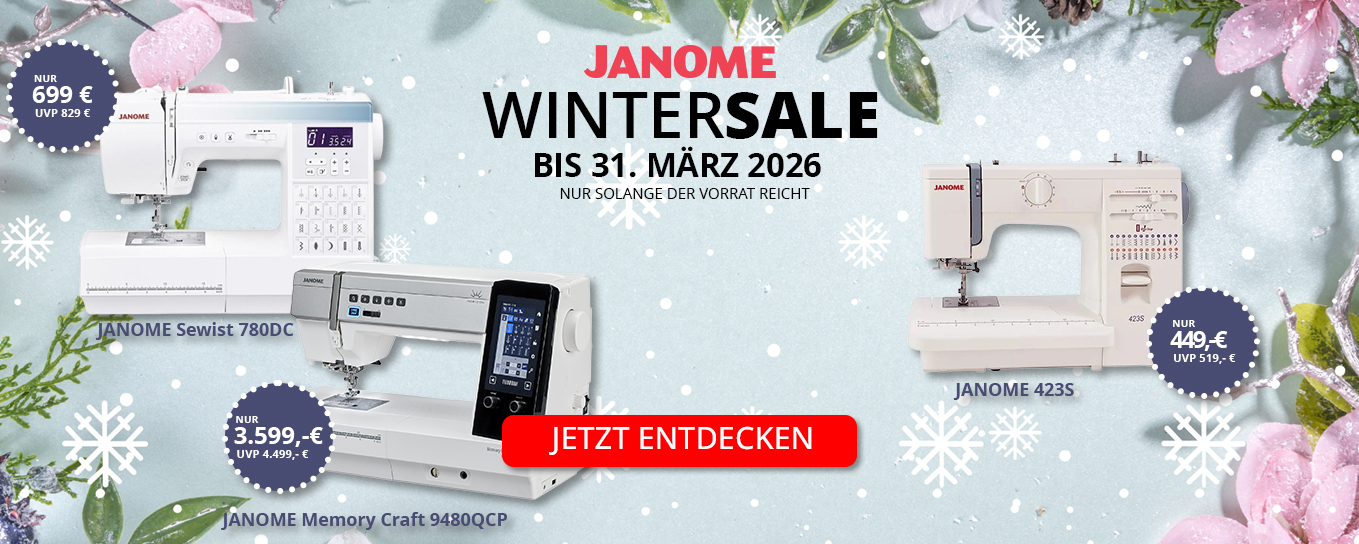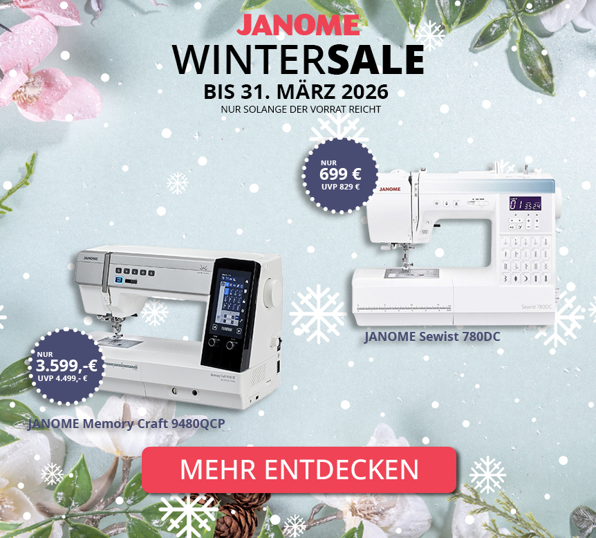 Janome Memory Craft 1000 Näh- und Stickkombi + GRATIS Artistic Digitizer 2.0 Junior Sticken mit Komfort und kreativer Freiheit Mit der Janome Memory Craft 1000 steigen Sie besonders angenehm in die Welt hochwertiger Stickprojekte ein – und setzen gleichzeitig anspruchsvolle Motive souverän um. Die Maschine verbindet ein sauberes Stichbild mit klarer Bedienlogik und einer Ausstattung, die auf zuverlässige Ergebnisse ausgelegt ist. Wenn Ihnen präzise Details und ein gleichmäßiges Stickbild wichtig sind, werden Sie die MC1000 schnell als verlässlichen Partner schätzen. Über die übersichtliche Anzeige wählen Sie Designs komfortabel aus, platzieren Motive exakt und passen Details direkt an. So behalten Sie jederzeit die Kontrolle über Ihr Projekt. Dazu arbeitet die Maschine ruhig und stabil – ein Qualitätsgefühl, das sich bei jedem Stickvorgang bemerkbar macht. Ein besonderes Extra in diesem Set: Die enthaltene Sticksoftware Janome Artistic Digitizer Junior 2.0. Damit gestalten Sie am Computer eigene Motive, bearbeiten vorhandene Designs, kombinieren Elemente und personalisieren Projekte mit Schriftzügen und Effekten. So entsteht ein kreatives Gesamtpaket, das Ihnen deutlich mehr Freiraum bietet als das reine Arbeiten mit vorinstallierten Mustern. Ob personalisierte Kleidung, individuelle Geschenke oder dekorative Heimtextilien: Die Memory Craft 1000 unterstützt Sie dabei, Ihre Ideen in hochwertiger Optik umzusetzen – und mit der Software erweitern Sie Ihre Möglichkeiten nochmals spürbar. Im Lieferumfang enthalten sind: Janome Memory Craft 1000 Nähfüße Zick-Zack Fuß A Reißverschlussfuß E Satinstichfuß E Automatik-Knopflochfuß R Kantennähfuß C Overlockfuß M Blindsaumfuß G ¼" Fuß O Stickfuß P Sonstiges Zubehör Spulenträger für Stickerei Geradstichplatte Stickrahmen SQ14e separater Garnrollenhalter Stylus für Touchdisplay USB-Stick mit 22 Stickmuster Janome Artistic Digitizer 2.0 Software – Juniorversion Janome MC1000 Näh- und Stickkombi 300 integrierte Nähprogramme, 12 Knopflocharten, 6 Nähschriften, 241 Stickmuster und 20 Stickschriften Quick-Drop-Spulensystem integrierter Superior V2 Einfädler benutzerfreundliche Direktwahltasten (Vernähprogramm, einstellbare Nähgeschwindigkeit, Start/Stopp Taste, integrierte Fadenschere, ...) Einstellungen je nach Projekt anpassbar für Freiarmsticken geeignet – Abnehmen der Stickeinheit im Nähmodus nicht erforderlich Stickmuster übersichtlich nach Themen und Stilen sortiert – jederzeit direkt abrufbar bis zu 140 x 140 mm Stickfläche mit USB-Anschluss und USB-Stick plus 22 Stickmotiven ideal für Einsteiger und Fortgeschrittene 5 Jahre Garantie Hier gelangen Sie zu den PDFs: ProspektSpezifikationen Janome Maschinen Für Einsteiger mit Anspruch: Kreativität leicht gemacht Stoffe, Farben und Muster werden mit der Memory Craft 1000 zum kreativen Spielraum: Mit 300 Nähprogrammen gestalten Sie Kleidung, Accessoires oder Patchwork-Projekte individuell – von klassischen Nutzstichen bis zu dekorativen Ziernähten. Zusätzlich stehen 241 integrierte Stickmuster bereit, die übersichtlich nach Themen und Stilen sortiert sind und sich direkt abrufen lassen. So finden Sie schnell das passende Motiv zum Verzieren, Personalisieren oder Gestalten. Praktisch im Alltag: Im Nähmodus muss die Stickeinheit nicht abgenommen werden. Das spart Zeit, erleichtert den Wechsel zwischen den Funktionen und schafft mehr Ruhe im Workflow. Auch der schnelle (magnetische) Stichplattenwechsel unterstützt zügiges Arbeiten. Eigene Designs übertragen Sie bequem per USB – für Projekte mit klarer persönlicher Note. Auch an die Umwelt wird gedacht: Janome setzt beim Verpacken bewusst auf umweltfreundlichen Zellstoff statt Styropor. Nähen und Sticken auf einem Gerät Die MC1000 kombiniert Nähen und Sticken in einem kompakten System. Weil die Stickeinheit im Nähmodus nicht demontiert werden muss, profitieren Sie von mehr Komfort und einem schnellen Wechsel zwischen den kreativen Disziplinen. Umfangreiche Näh- und Stickprogramme inklusive USB-Port für individuelle Gestaltungsmöglichkeiten Mit 300 Nähprogrammen, 12 Knopflocharten, 6 Nähschriften, 241 Stickmustern und 20 Stickschriften sind Sie für unterschiedlichste Projekte gerüstet. Per USB importieren Sie eigene Stickdateien unkompliziert und setzen individuelle Ideen zügig um. Quick-Drop-Spule Die Spule ist schnell eingesetzt und dank transparenter Abdeckung behalten Sie den Füllstand im Blick. Das Quick-Drop-System reduziert dabei Fadenverhedderungen und unterstützt einen sauberen Ablauf. Stickfläche bis zu 140 x 140 mm Für Ihre Motive steht eine Stickfläche von bis zu 140 × 140 mm zur Verfügung – passend für viele dekorative und personalisierte Projekte. Anpassbare Einstellungen und integrierte Tools Fadenspannung und Nähfußdruck lassen sich manuell projektbezogen einstellen. Der integrierte Superior V2 Einfädler erleichtert das Einfädeln deutlich und spart Zeit im Alltag. Alles direkt auf einen Blick Direktwahltasten für wichtige Funktionen wie Vernähen, Start/Stopp sowie die stufenlose Geschwindigkeitsregelung sorgen dafür, dass Sie Einstellungen schnell erreichen – ohne Umwege im Menü. Farbiger Touchscreen mit übersichtlichem Menü Die Stickmuster sind thematisch strukturiert und dadurch schnell auffindbar. Über den Touchscreen navigieren Sie komfortabel und behalten Ihre Auswahl jederzeit im Blick. Umfangreiches Zubehör Zum Lieferumfang gehört ein umfangreiches Set inklusive Nähfüßen, Stylus und USB-Stick – damit starten Sie direkt mit Ihren Projekten. Nachhaltige Verpackung Statt Styropor wird beim Verpacken auf umweltfreundlichen Zellstoff gesetzt – ein bewusst gesetzter Schritt in Richtung Nachhaltigkeit. 5 Jahre Garantie JANOME bietet grundsätzlich eine Garantie von 5 Jahren. Produktinformationen 300 Nähprogramme 12 Knopflocharten 6 Nähschriften maximale Stichbreite 7 mm maximale Stichlänge 5 mm maximale Nähgeschwindigkeit
