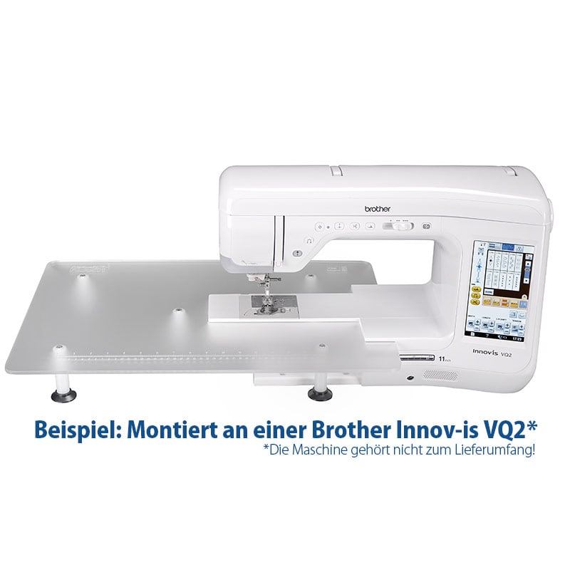 Der extra große Anschiebetisch mit einer Fläche von 600 x 400 mm bietet Ihnen maximale Unterstützung bei großformatigen Nähprojekten. Die samtig matte Oberfläche ist speziell zum Steppen und Nähen entwickelt und ermöglicht ein ruhiges, präzises Führen selbst schwerer Stoffe – ideal für Quilts, Heimtextilien oder Gardinen.