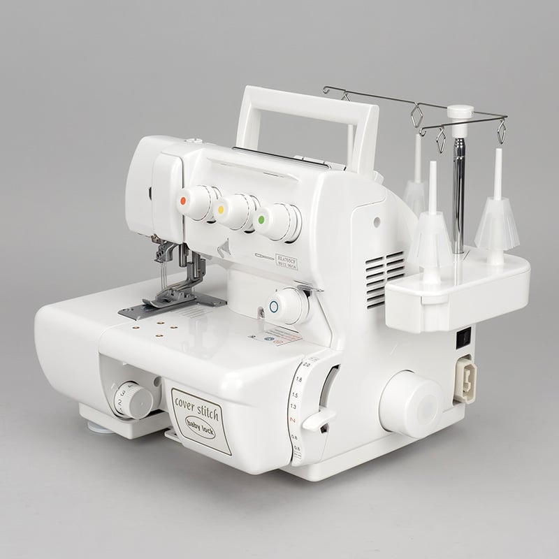 Durch die vertikale Position der Nadeln nutzt die Baby Lock Coverstich optimal ihre Kraft aus.