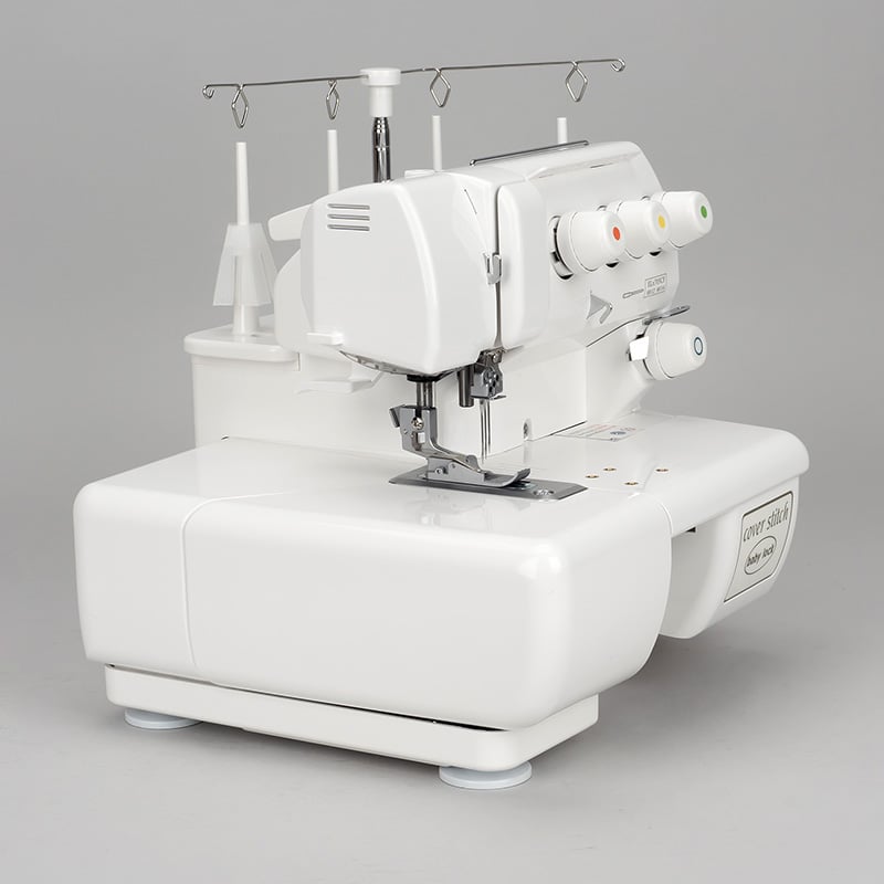 Die Coverstich bietet übersichtlich angeordnete Fadenspannungen für Greifer- und Nadelfäden.