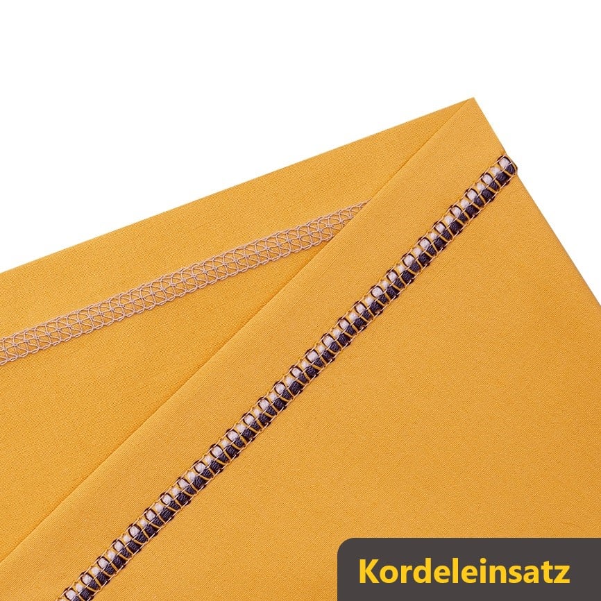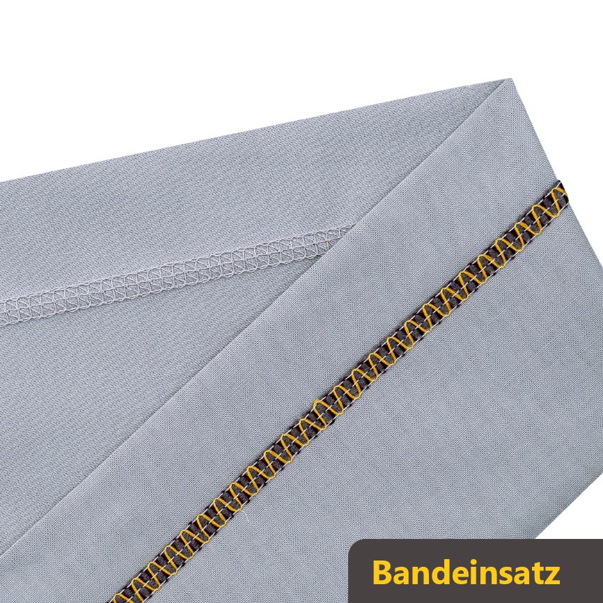 - Ermöglicht gleichzeitiges Vernähen von Kordeln und Bändern