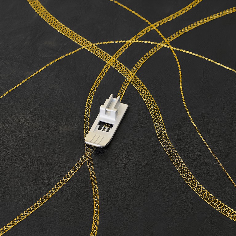 Er unterstützt nicht nur beim Nähen von besonderen Materialien, sondern gleitet dank der Antihaftsohle auch problemlos über Quernähte, wodurch mehrere Stofflagen sicher und gleichmäßig transportiert werden – ein lästiges Aufstauen wird somit vermieden.