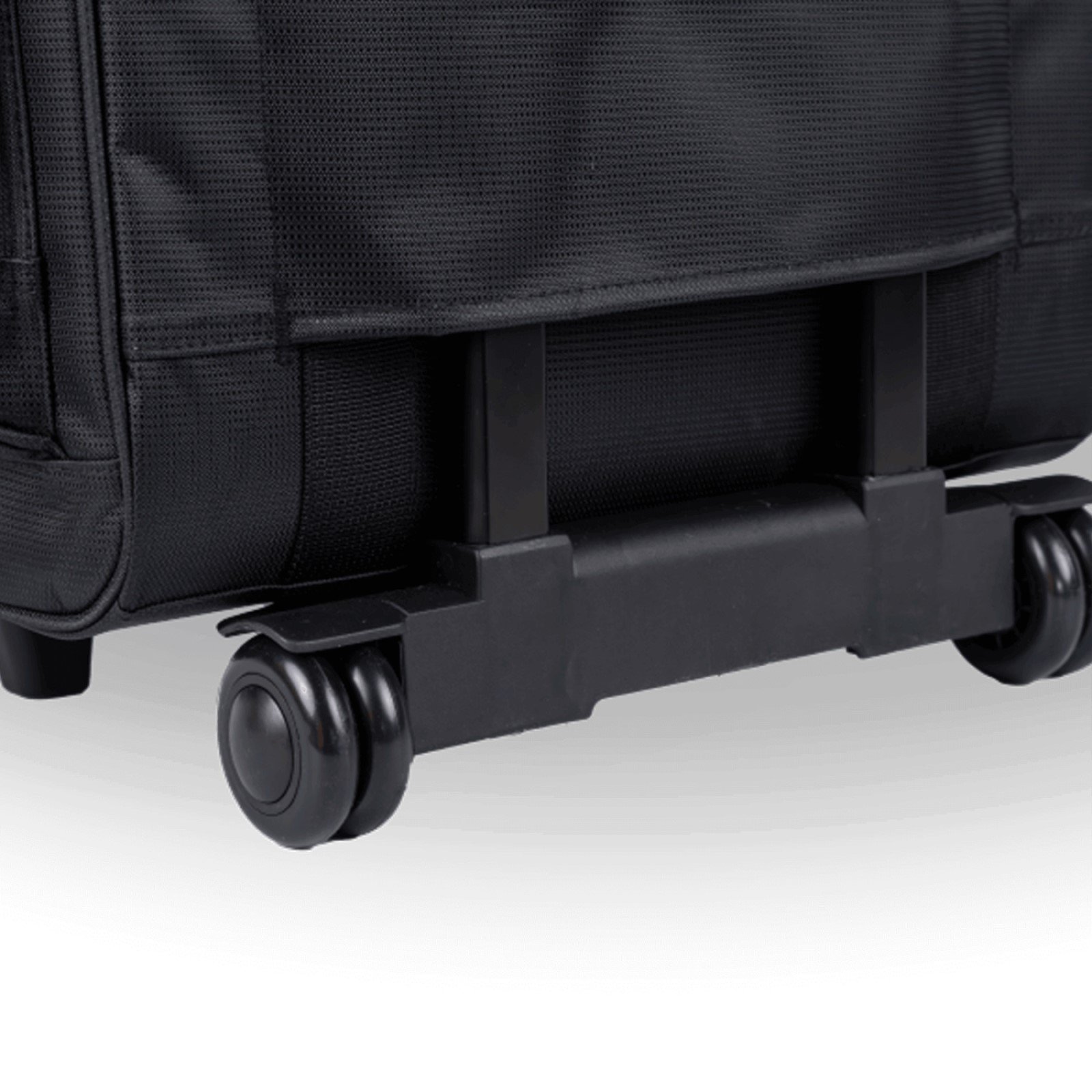 Das hochwertige Canvas-Material ist strapazierfähig, pflegeleicht und wasserabweisend, sodass Ihre Maschine zuverlässig vor Staub, Feuchtigkeit und Stößen geschützt bleibt. Für höchsten Bedienkomfort sorgen stabile Rollen, eine Kipp-Basis und ein ausziehbarer Teleskopgriff, der das Ziehen rückenschonend und bequem macht. Seitliche Tragegriffe ermöglichen das problemlose Anheben oder Verstauen im Auto.