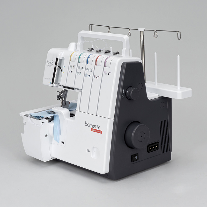 Dank offenem, farblich markiertem Fadenweg fädeln Sie die bernette 48 Funlock schnell und sicher ein, indem Sie den Farbkennzeichnungen folgen. Der separate Nadeleinfädler sowie die Untergreifer-Einfädelmechanik erleichtern den Ablauf zusätzlich.