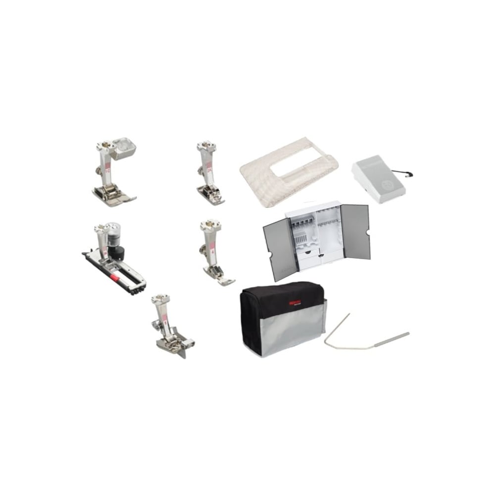 Auf die Erstausstattung die Sie mit Ihrer Maschine erhalten (wie z.B. Nadeln, Spulen, Spulenkapsel, Stichplatten, Einfädler, Messer, Werkzeuge, Fadenablaufscheiben, Fadenabschneider usw.) können wir leider keine Garantie übernehmen, hierfür bitten wir um Verständnis. Ebenfalls entfällt der Garantieanspruch, bei eigenverschuldeten Schäden, Fehlbedienung, mangelhafte Pflege, unautorisierten technischen Eingriffen oder dem Einsatz von nicht originalen Zubehörteilen.