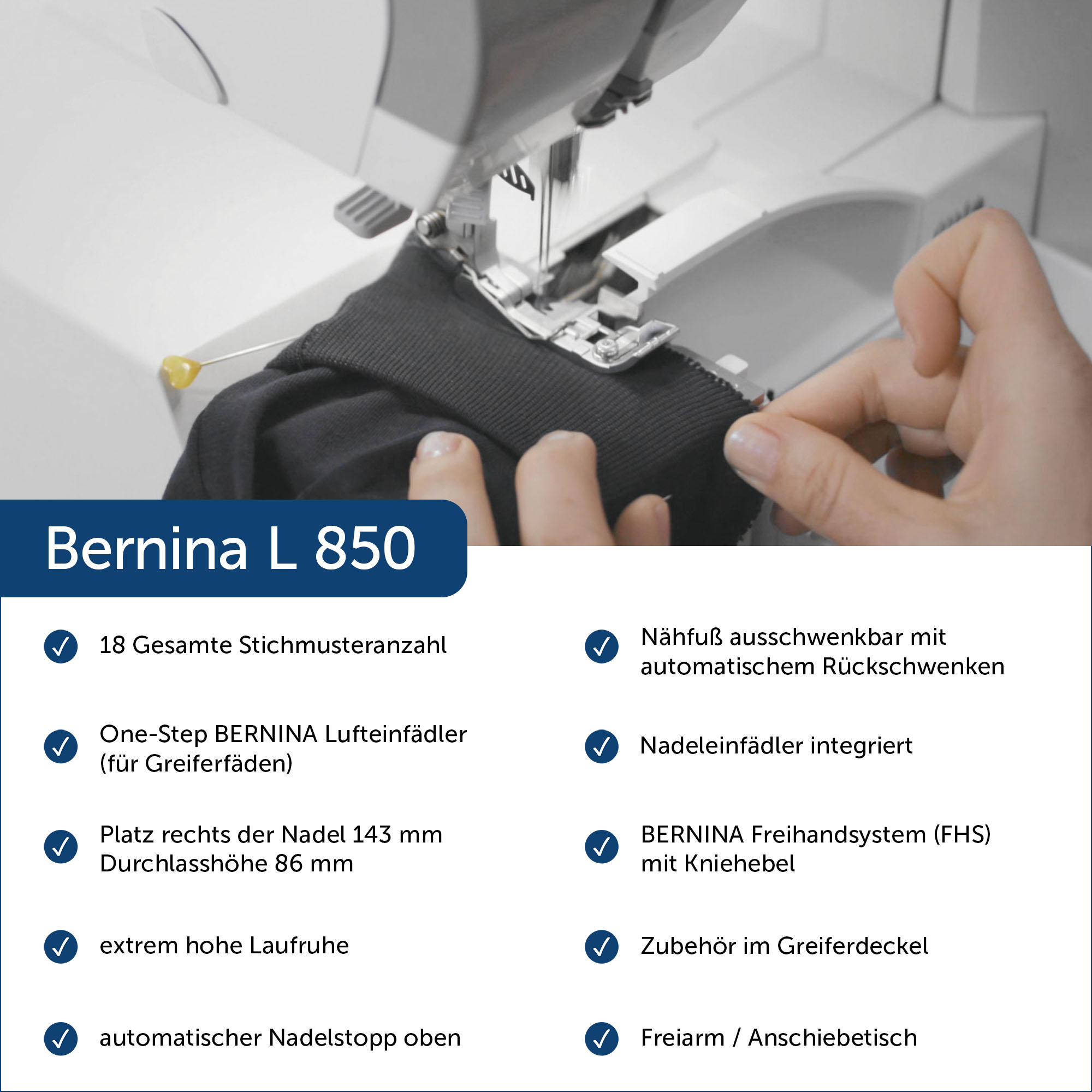 Auf die Erstausstattung die Sie mit Ihrer Maschine erhalten (wie z.B. Nadeln, Spulen, Spulenkapsel, Stichplatten, Einfädler, Messer, Werkzeuge, Fadenablaufscheiben, Fadenabschneider usw.) können wir leider keine Garantie übernehmen, hierfür bitten wir um Verständnis. Ebenfalls entfällt der Garantieanspruch, bei eigenverschuldeten Schäden, Fehlbedienung, mangelhafte Pflege, unautorisierten technischen Eingriffen oder dem Einsatz von nicht originalen Zubehörteilen.