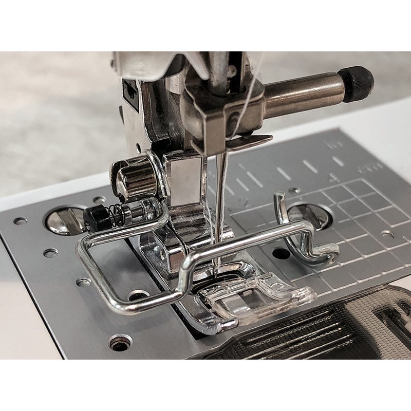 - verhindert dass die Finger beim Nähen unter die Nadel geraten