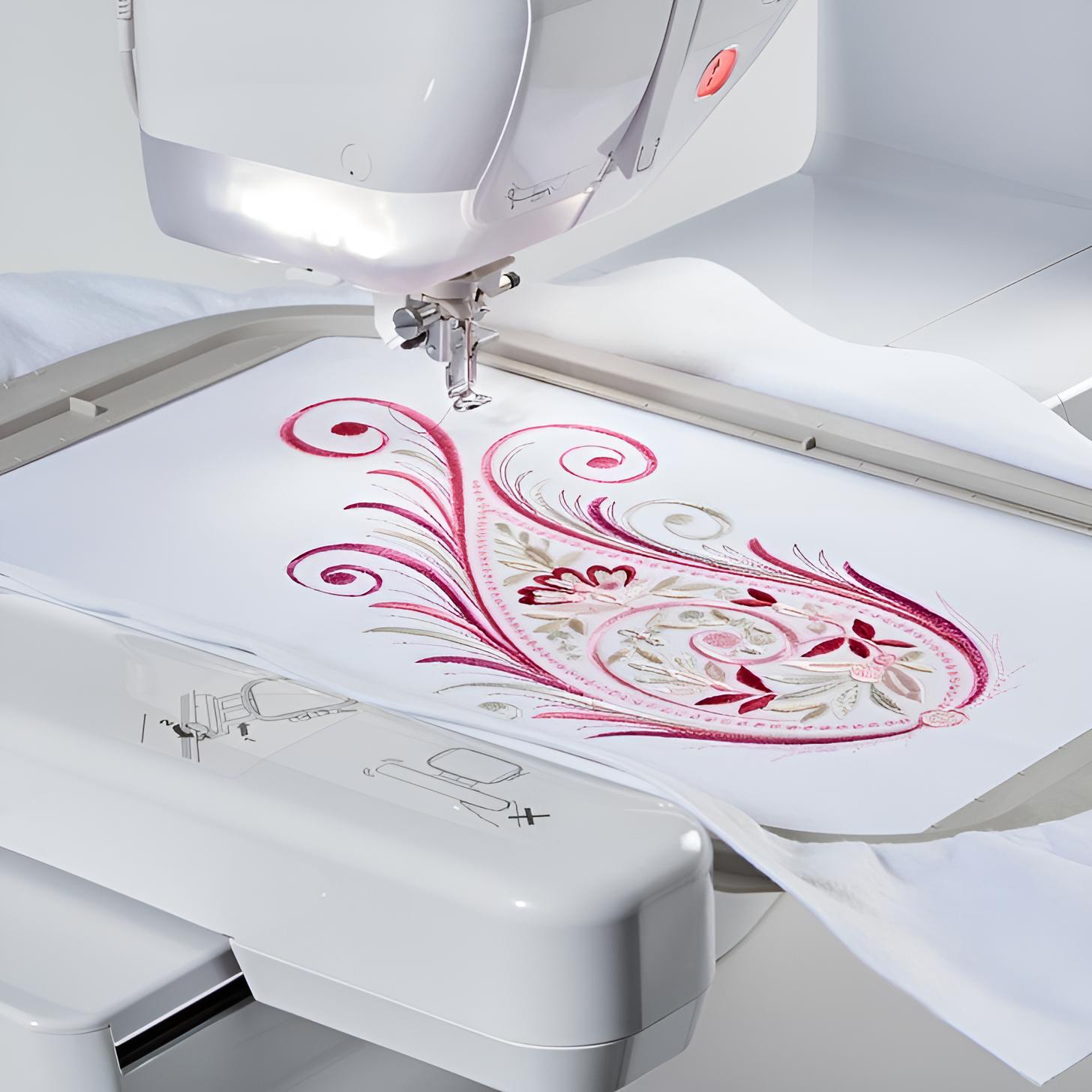 Die extragroße Stickfläche ermöglicht das Sticken großer Motive ohne Umspannen. Dadurch sparen Sie Zeit und erzielen gleichmäßige Ergebnisse.