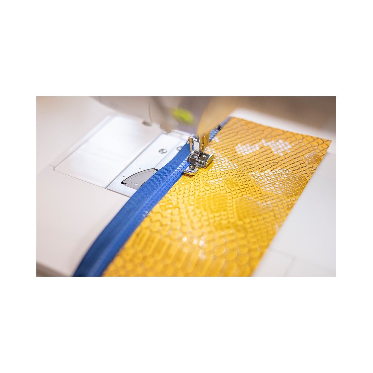 Die NV1045SE bietet 40 integrierte Stiche inklusive 6 Knopflochvarianten. Mit Funktionen wie Extra-Komforteinfädler, Fadenabschneider, Drop-in-Spule und Start-/Stopp-Taste sparen Sie Zeit und arbeiten effizient. Besonders praktisch: Der Kniehebel ermöglicht freihändiges Arbeiten – ideal für große Quilts und Stoffbahnen.