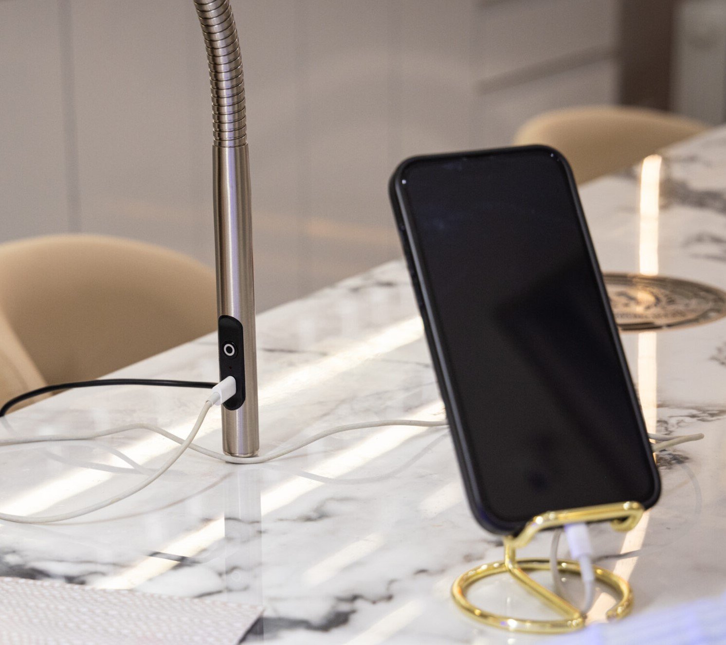 Die Lichtintensität lässt sich per Knopfdruck bequem an Ihre Bedürfnisse anpassen. Zusätzlich können Sie über den integrierten USB-C-Anschluss Ihre mobilen Geräte laden. Die Slimline 4 kombiniert moderne Optik mit hoher Funktionalität und ist somit eine perfekte Ergänzung für Ihr Zuhause oder Atelier.