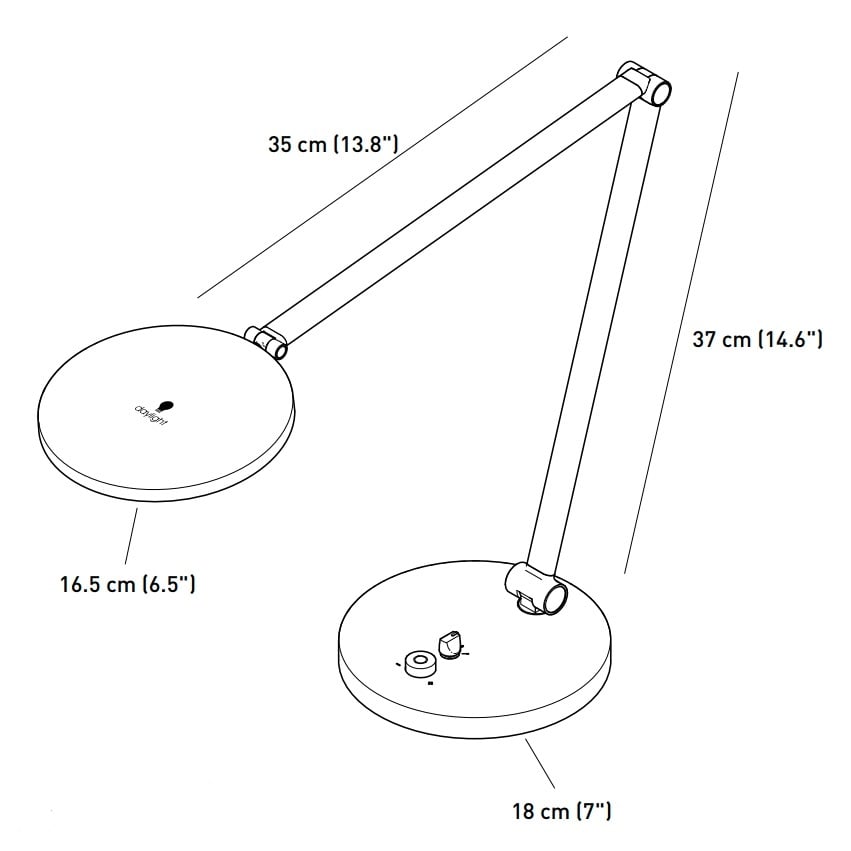 - Abmessungen: Lampenschirm Ø 16 cm, Arme je 35 cm, Fuß Ø 18 cm