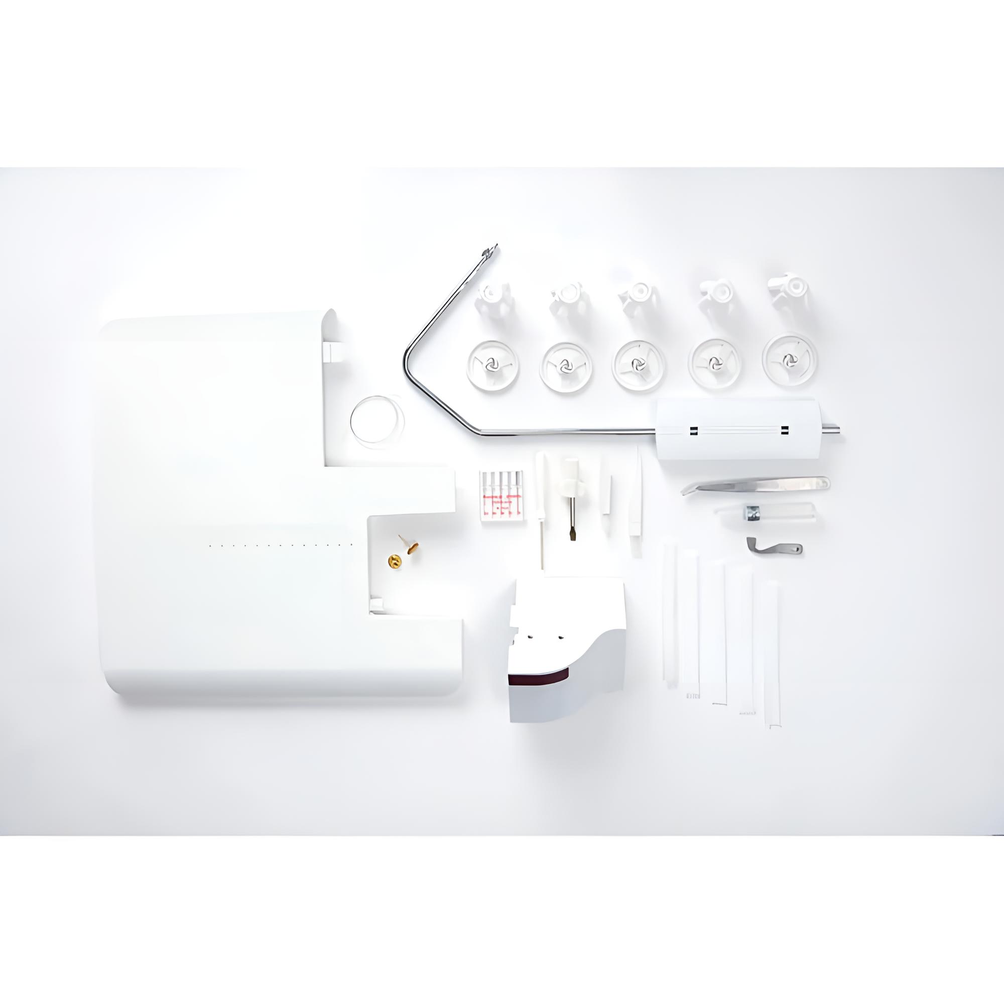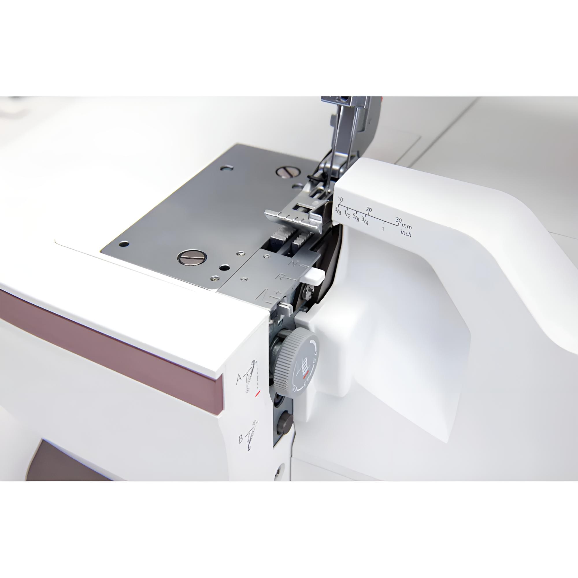 Die AMBER™ Air S500 Overlock-Maschine überzeugt durch einfaches Einfädeln per Luftdruck, präzise Stiche und komfortable Funktionen wie LED-Beleuchtung, Kniehebel und einen integrierten Zubehörhalter. Der Differentialtransport sorgt für perfekte Ergebnisse bei dehnbaren oder feinen Stoffen – ideal für kreative Overlock-Projekte.
