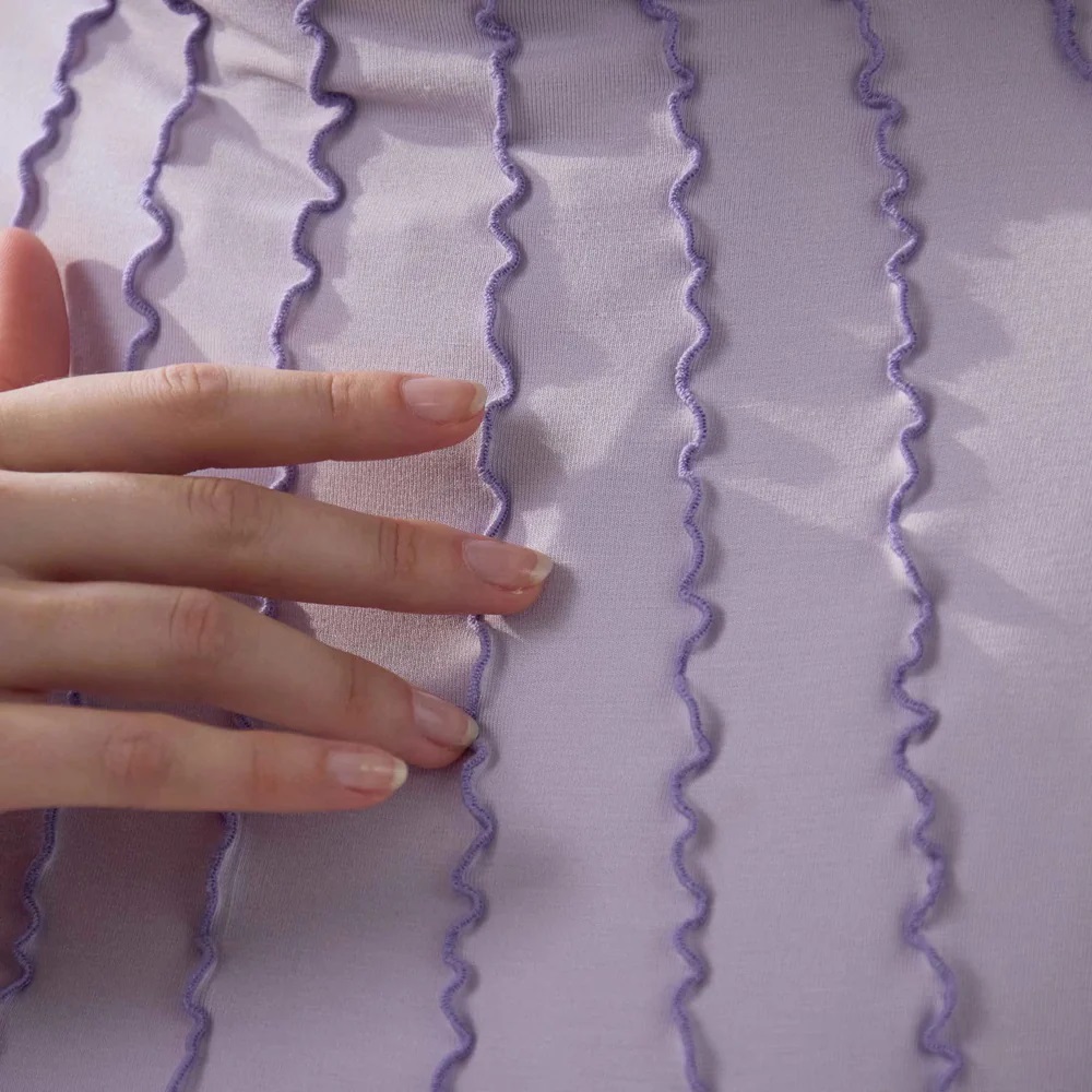 Die Maschine bietet 16 vielseitige Stichoptionen, darunter Overlock-, Flatlock-, Rollsaum- und dekorative Stiche. Farblich markierte Einfädelwege und eine Einfädelhilfe für den Untergreifer ermöglichen schnelles, fehlerfreies Einfädeln. Der stufenlos einstellbare Differentialtransport sorgt dafür, dass sich elastische Stoffe nicht wellen und stabile Materialien gleichmäßig geführt werden.