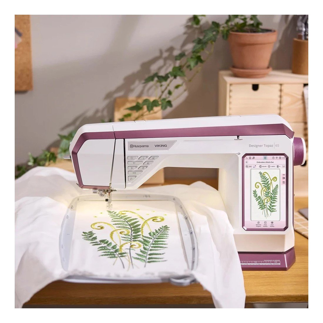 Die Husqvarna Viking Topaz 65 vereint leistungsstarkes Nähen mit vielseitiger Stickfunktion und intuitiver Steuerung. Mit dem großen 7″-Farb-Touchscreen bedienen Sie die Maschine so einfach wie ein Tablet – alle Funktionen, Stiche und Tutorials sind übersichtlich dargestellt. Über Wi-Fi können Sie sich mit CREATIVATE™ verbinden, automatische Software-Updates durchführen und Zugriff auf zahlreiche Designs erhalten.