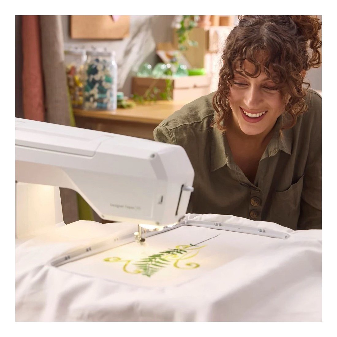 Automatische Funktionen wie Fadenschneider, Nadeleinfädler und JoyOS Advisor machen das Arbeiten effizient. So konzentrieren Sie sich ganz auf Kreativität statt auf Technik.
