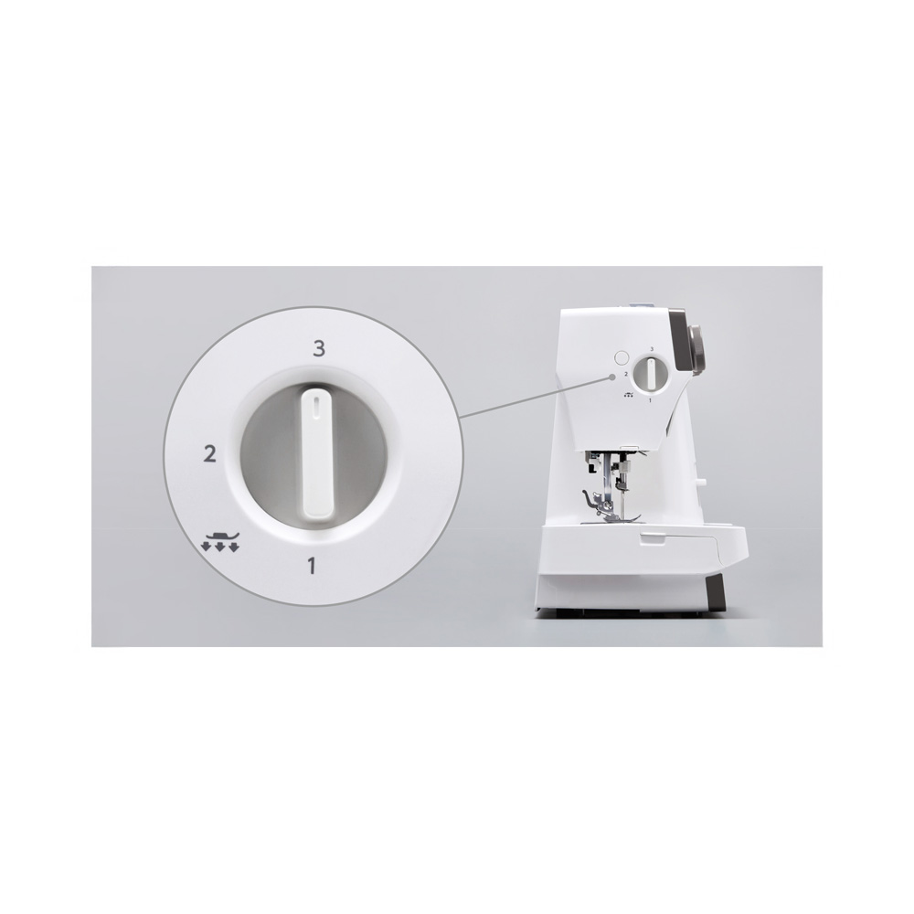 Dank dreistufigem Füßchendruck passt sich die Maschine flexibel an verschiedene Stoffstärken an – ideal für stabile oder elastische Materialien.