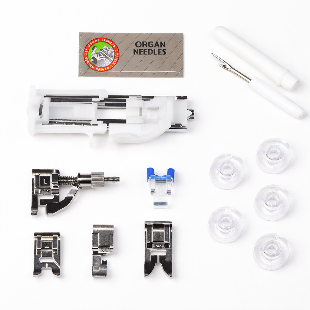 Das geräumige Zubehörfach bietet genug Platz für Nähfüße, Spulen und weiteres Zubehör – alles ist schnell zur Hand und ordentlich untergebracht.