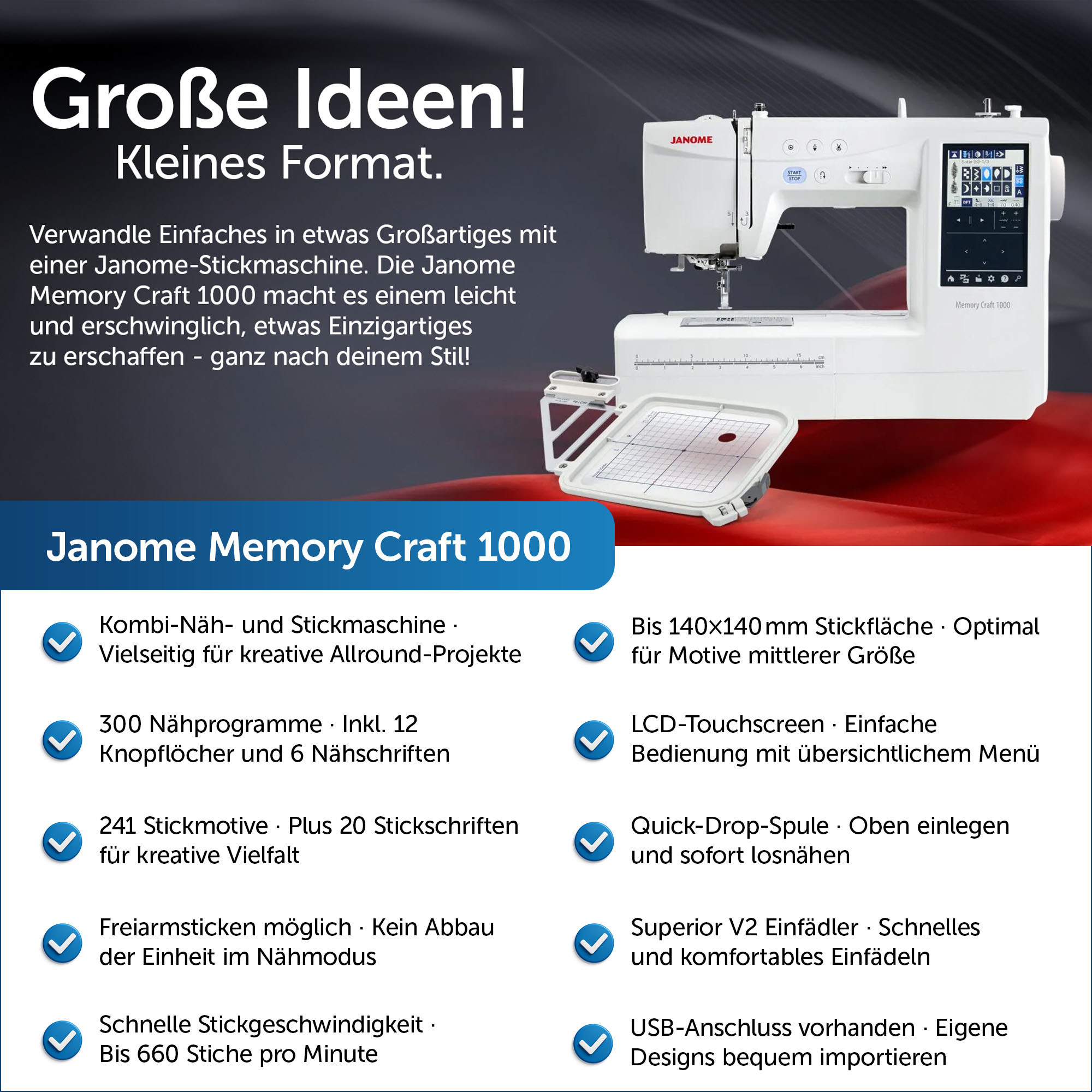 Janome Memory Craft 1000 Näh- und Stickkombi + GRATIS Artistic Digitizer 2.0 Junior