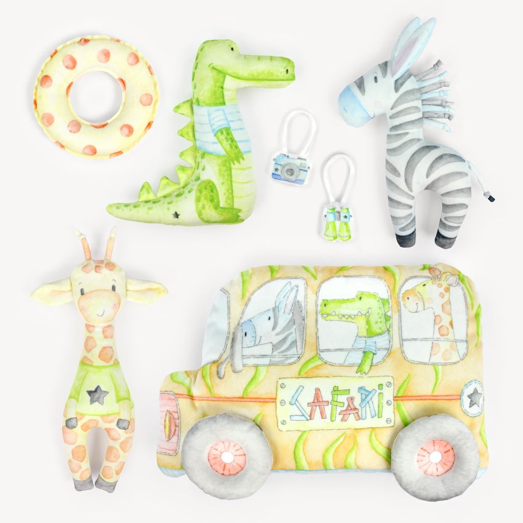 - Enthalten: Krokodil „PEPE“, Giraffe „OLE“, Zebra „KARL“, Schwimmring, Kamera, Fernglas & Safari-Bus
