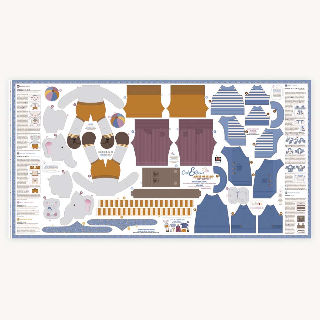 Kullaloo Cut & Sew Panel "DRESS ME BESTIE" EDDY ELEFANT (80 x 155 cm)