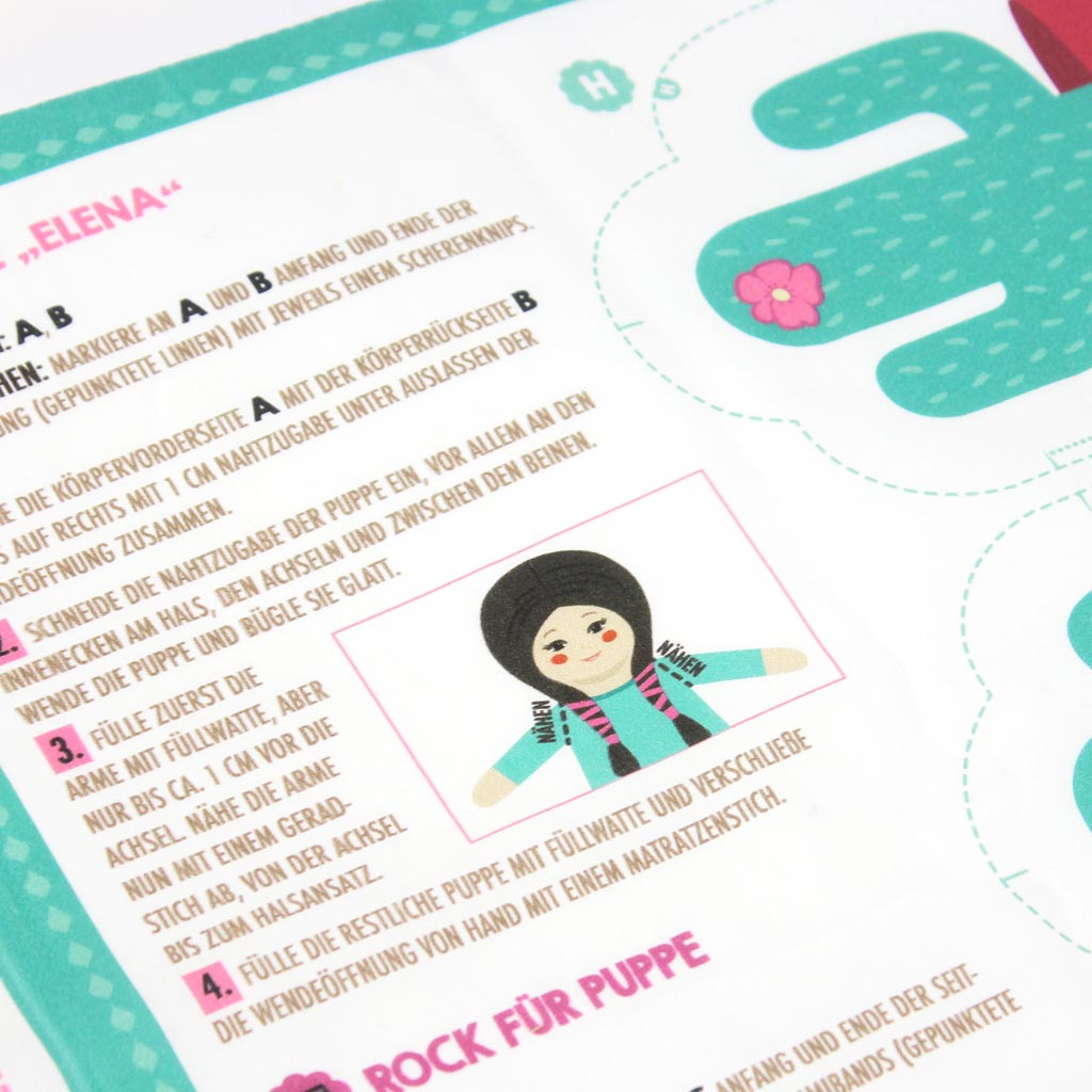 Die Stoffpuppe ELENA erhält mit dem wendbaren Poncho und dem süßen Rock ein passendes Outfit. Lama LALA kommt mit einer abnehmbaren Satteldecke und lässt sich ebenfalls aus dem Panel nähen. Kaktus und Wimpelkette sorgen zusätzlich für verspielte Akzente im Kinderzimmer. Die enthaltenen Nähprojekte sind sowohl für Einsteiger als auch für geübte Näherinnen geeignet und machen besonders viel Spaß, da alle Teile direkt aufgedruckt und die Nahtzugabe bereits enthalten ist.