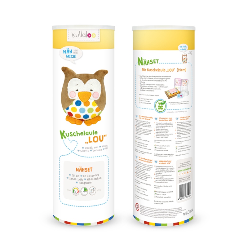 Mit dem Kullaloo Nähset "Lou" wird das Nähen einer süßen Kuscheleule zum Vergnügen! Alle Materialien wie kuschelweicher Microfaserplüsch, Füllwatte und ein liebevolles Stofflabel sind bereits enthalten. Das Set wird in einer dekorativen Dose geliefert und enthält eine hochwertige Schritt-für-Schritt-Anleitung auf Deutsch und Englisch.