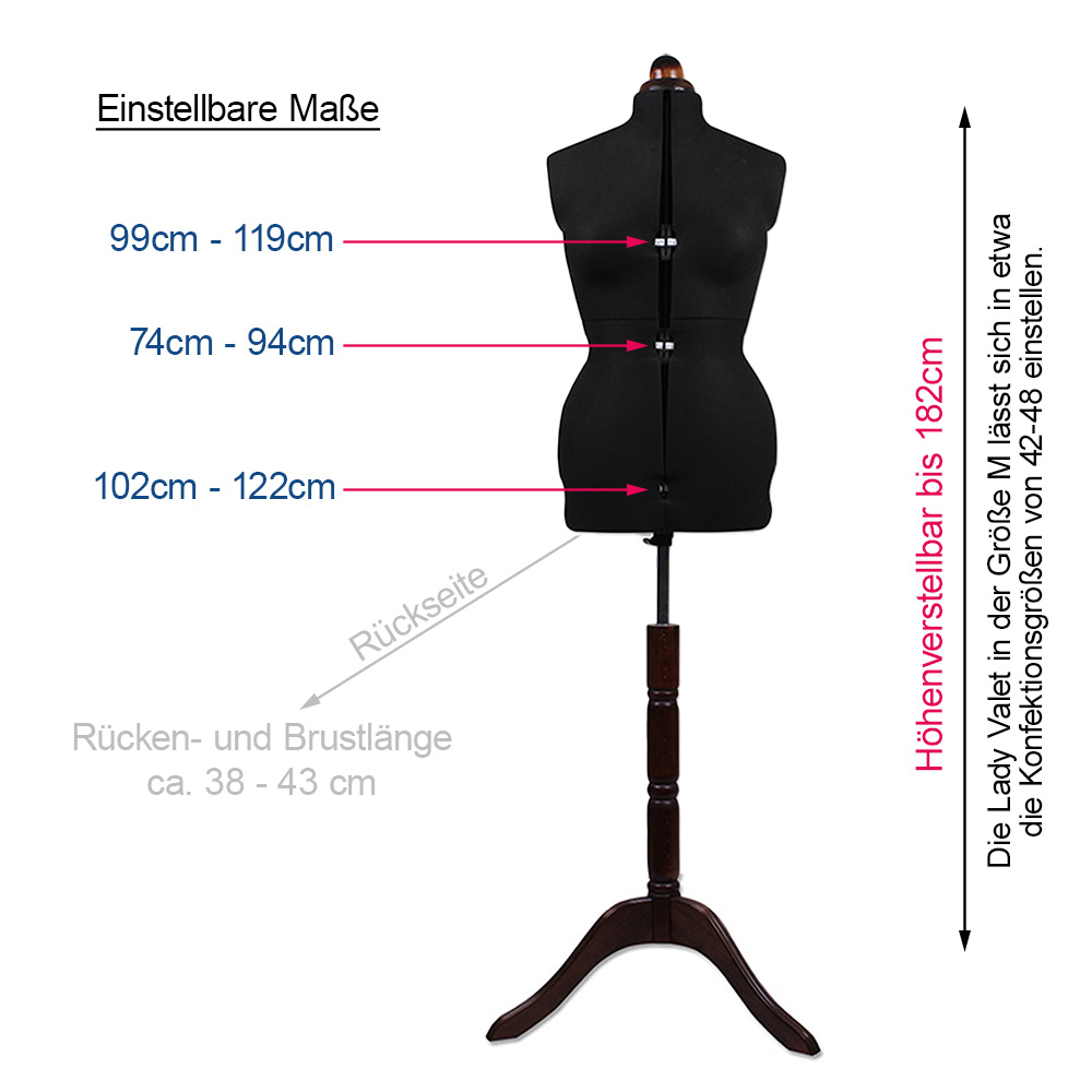 - Büste verstellbar: 99 cm – 119 cm