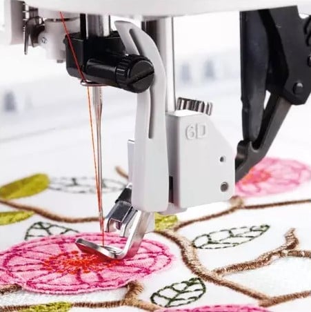 Der dynamische Sprungfuß von PFAFF wurde speziell für Stick- und Freihandarbeiten entwickelt. Durch seine offene Bauweise genießen Sie maximale Sicht auf den Nähbereich, was das präzise Arbeiten deutlich erleichtert. Die integrierte Sprungfunktion verhindert, dass der Stoff bei der Bewegung der Nadel mitgezogen wird. So profitieren Sie von einer gleichmäßigen Stichqualität, optimaler Kontrolle und einem sauberen Stickergebnis – ideal für anspruchsvolle Designs auf empfindlichen Stoffen.