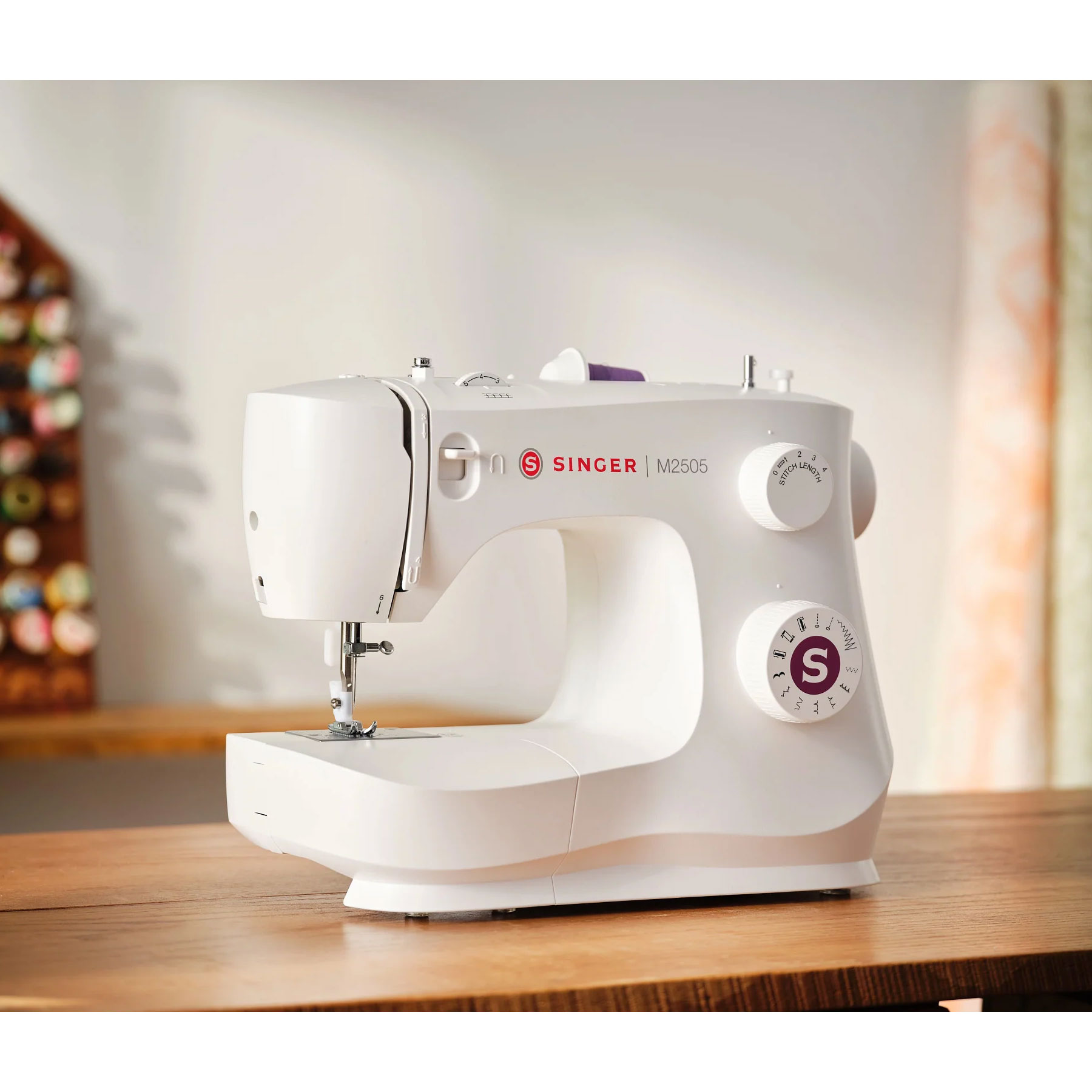 Mit der SINGER® M2505 erhalten Sie eine zuverlässige, kompakte Haushaltsnähmaschine mit solider Technik und einfacher Handhabung – ideal für alle, die komfortabel in die Welt des Nähens einsteigen möchten.