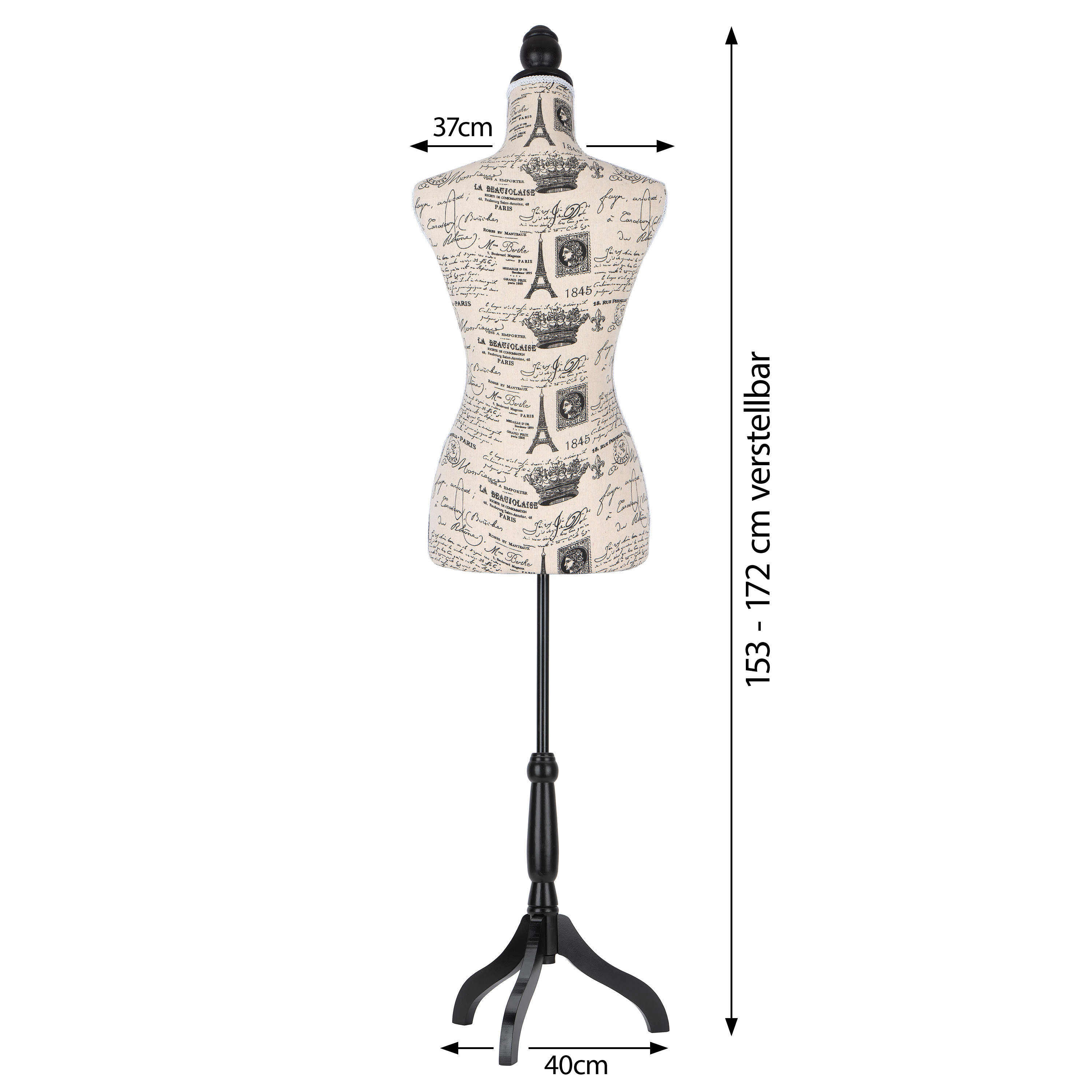 Die Semplix Schneiderbüste mit dekorativem Druck bringt französisches Flair und handwerkliche Eleganz in Ihr Zuhause oder Atelier. Der naturfarbene Baumwollbezug mit detailreichem Eiffelturm-Motiv vermittelt einen Hauch Vintage-Charme und erinnert an die Modewelt von Paris. In Kombination mit dem stabilen Holz-Dreifuß und dem schwarzen Halsabschluss entsteht eine zeitlos stilvolle Deko-Schneiderpuppe, die perfekt zum Drapieren von Tüchern, Schmuck oder Kleidung geeignet ist.