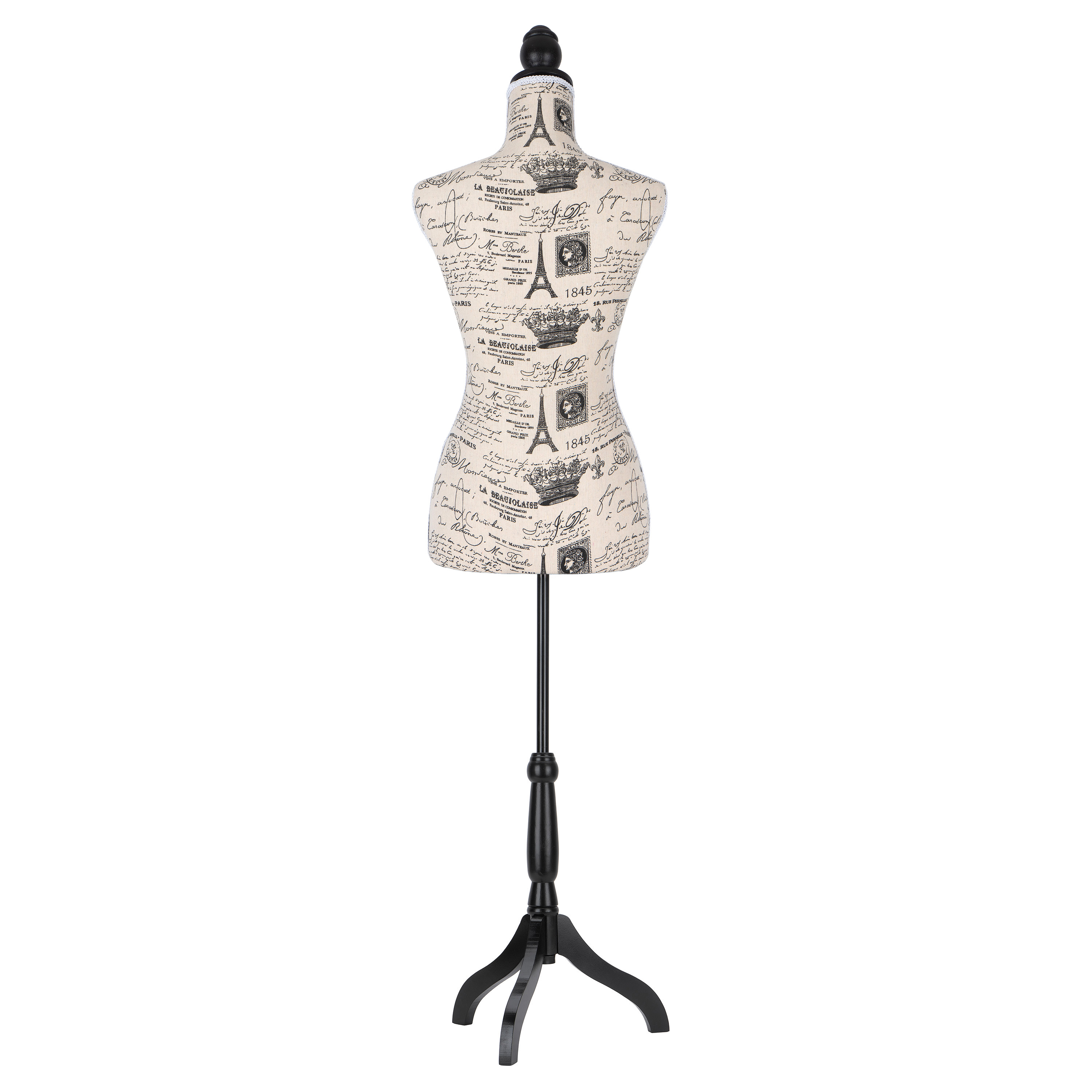 Semplix Schneiderbüste mit Motiv-Druck, Paris – dekorative Schneiderpuppe mit Eiffelturm-Motiv und Holz-Stativ