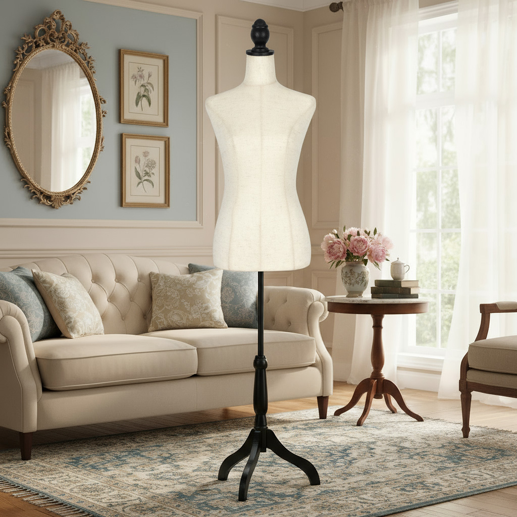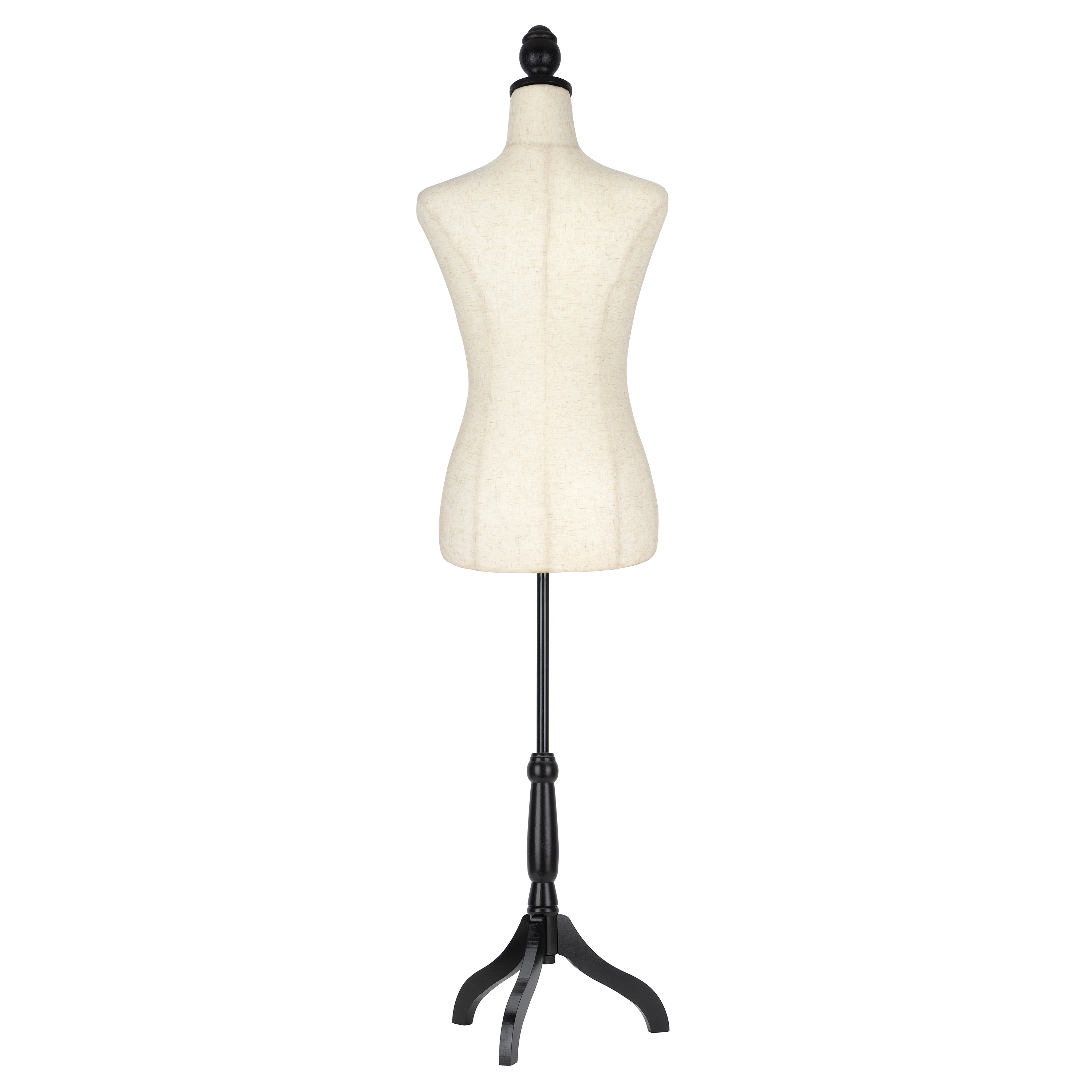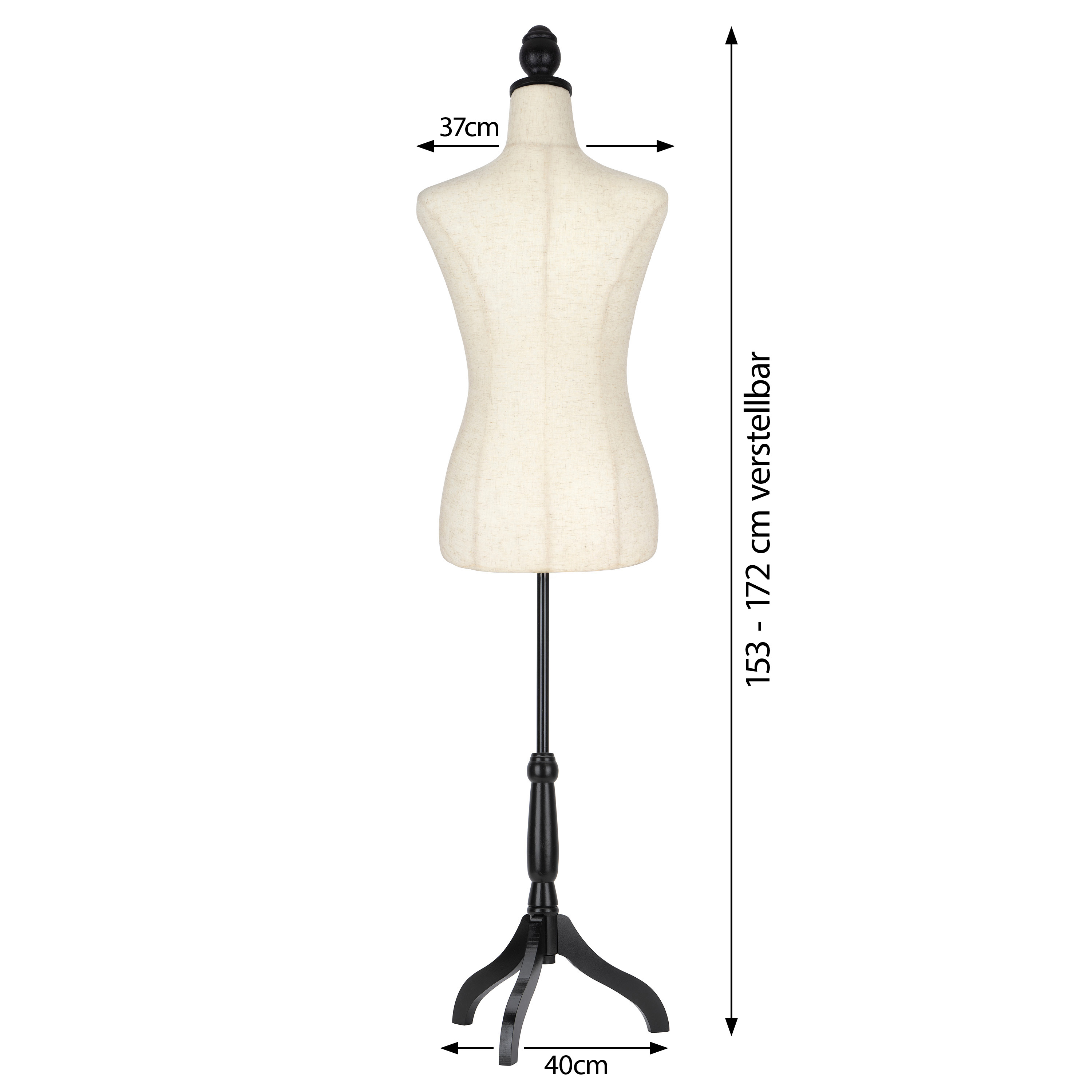 Semplix Schneiderbüste mit Leinen Bezug – dekorative Schneiderpuppe mit Leinenbezug und Holz-Tripod