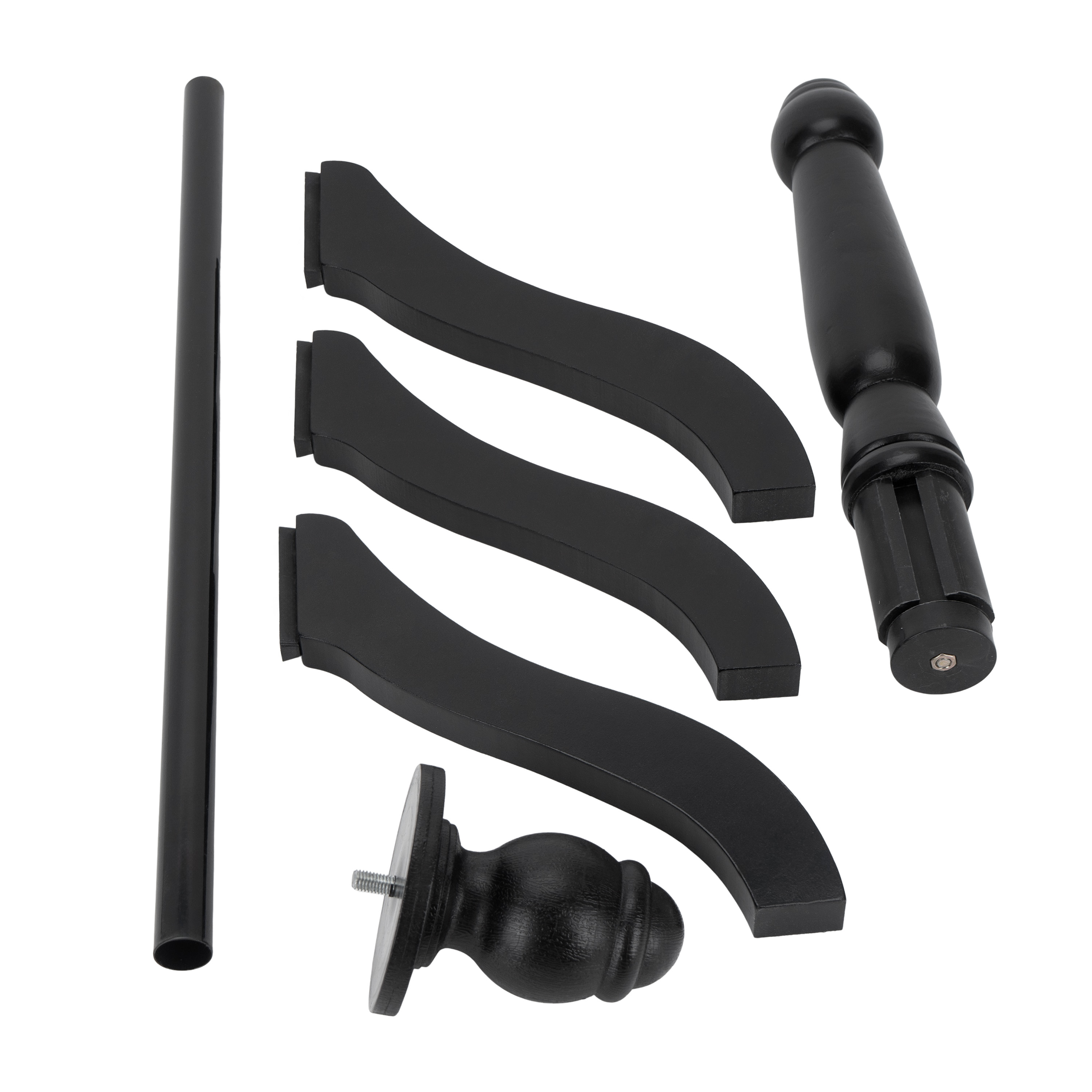 - Standfuß: Dreibein (Tripod) aus Holz, schwarz lackiert
