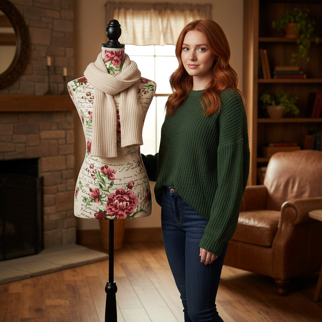 Semplix Schneiderbüste – dekorative Schneiderpuppe mit Bezug aus Calico Baumwollstoff und Holz-Tripod Romantische Deko-Schneiderbüste mit zartem Rosenmotiv Leichter, stabiler Torso aus EPS-Hartschaum (Styropor) Hochwertiger Calico-Baumwollstoff (100% Baumwolle), naturbelassen und griffig Schwarzer Halsabschluss und klassisches Holz-Dreibein für einen stilvollen Look Ideal als Wohn- oder Schaufensterdekoration oder zum stilvollen Präsentieren von Mode Die Semplix Schneiderbüste mit floralem Rosen-Druck auf einem Baumwollbezug vereint Funktionalität mit dekorativem Charme und bringt ein romantisches Flair in jedes Nähzimmer oder Atelier. Der naturfarbene Baumwollbezug aus festem Calico-Gewebe mit feinem Rosenprint verleiht der Büste eine besonders wohnliche und handwerkliche Note. Dank des stabilen Holz-Tripods und des schwarzen Halsabschlusses entsteht ein harmonischer Kontrast, der Eleganz und Natürlichkeit verbindet. Perfekt geeignet, um Tücher, Schmuck oder leichte Kleidungsstücke stilvoll zu präsentieren. Produktdetails Material Torso: EPS-Hartschaum (Styropor) Bezugsstoff: 100% Baumwolle, Calico (ungebleicht, mit fester Leinwandbindung) Motiv: Rosen Halsabschluss: Schwarz Standfuß: Dreibein (Tripod) aus Holz, schwarz lackiertSchulterbreite: 37 cm Brustumfang: 86 cm Taille: 64 cm Hüfte: 87 cm Höhe Torso: 70 cm Gesamthöhe: 153 - 172 cm (verstellbar) Sockelgröße / Fußdurchmesser: 40 cm Gewicht: 2,8 kg Ständer-/Fußmaterial: Massivholz Höhenverstellbar: Ja Drehbar: Nein Torso abnehmbar: Ja Belastbarkeit / Nutzung: Dekoration und leichte Kleidung geeignet (nicht zur Schneideranprobe) Lieferzustand: Zerlegt, einfache Montage Pflege: Trocken abwischbar Empfohlene Umgebung: Innenbereich, keine direkte Sonneneinstrahlung