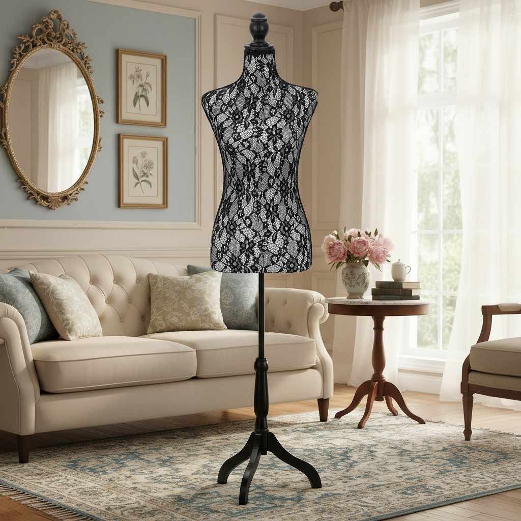 Semplix Schneiderbüste mit einem Bezug aus Spitze – dekorative Schneiderpuppe mit schimmerndem Spitzenbezug