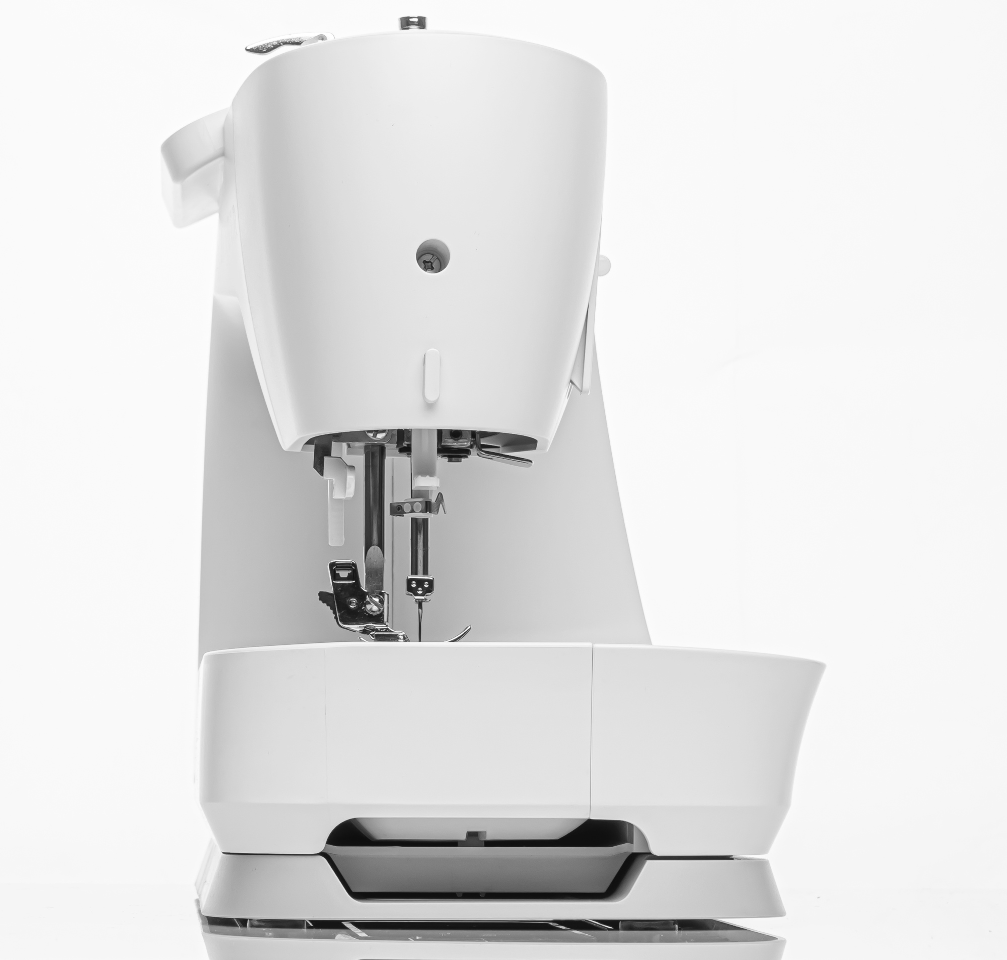 Das Snap-On-Nähfußsystem ermöglicht schnellen Wechsel der Nähfüße. Dank Top Drop-In-Spule ist auch das Spulenwechseln denkbar einfach – ohne Umfädeln, ohne Haken.