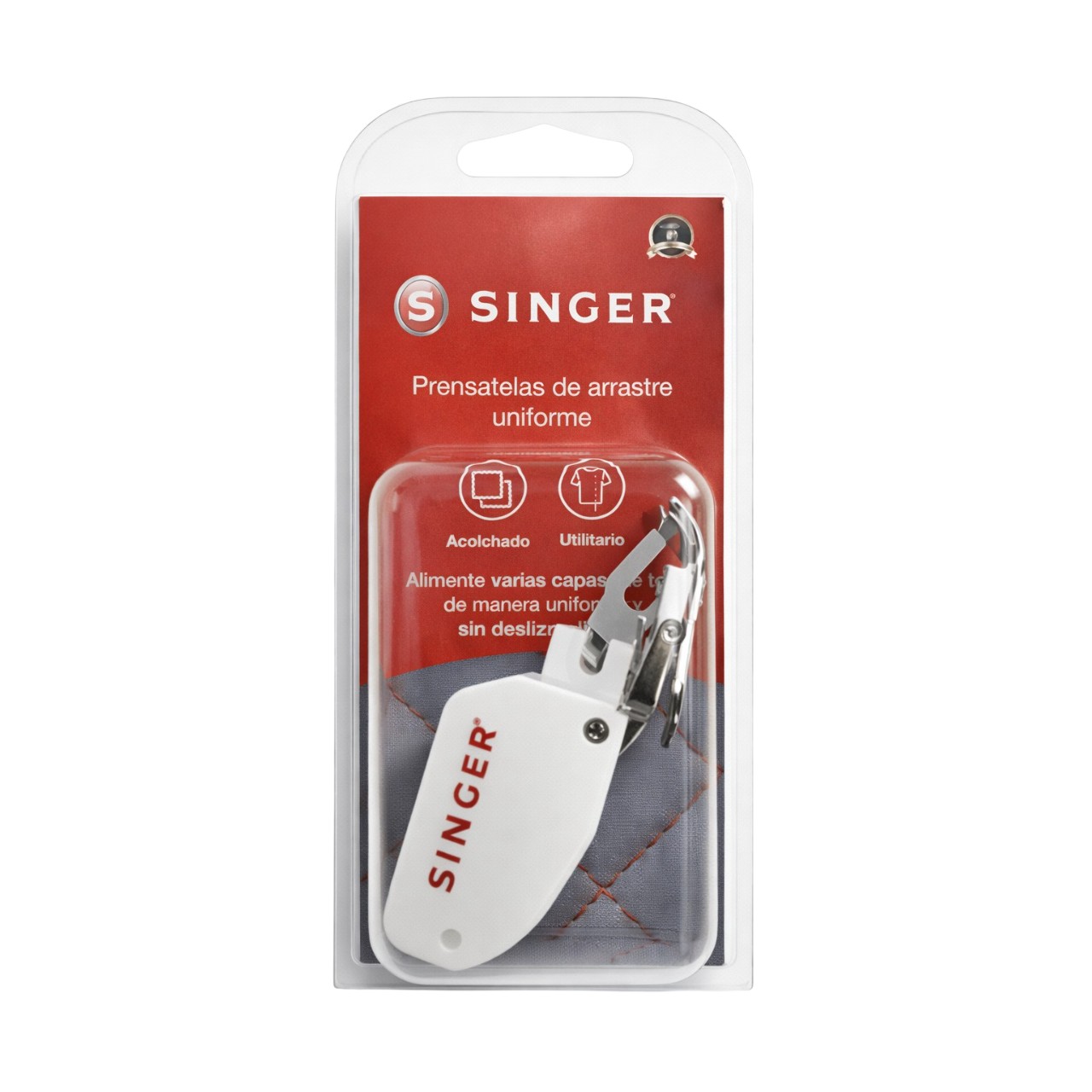 Der SINGER Obertransportfuß ist ein zuverlässiger Helfer beim exakten Zusammennähen mehrerer Stofflagen oder rutschiger Materialien. Durch den integrierten Obertransporteur wird der Stoff gleichmäßig von oben geführt, während der untere Transporteur der Maschine die untere Stofflage bewegt. So bleiben Muster wie Streifen oder Karos perfekt ausgerichtet – ideal für Patchwork, Quilting oder anspruchsvolle Materialien.