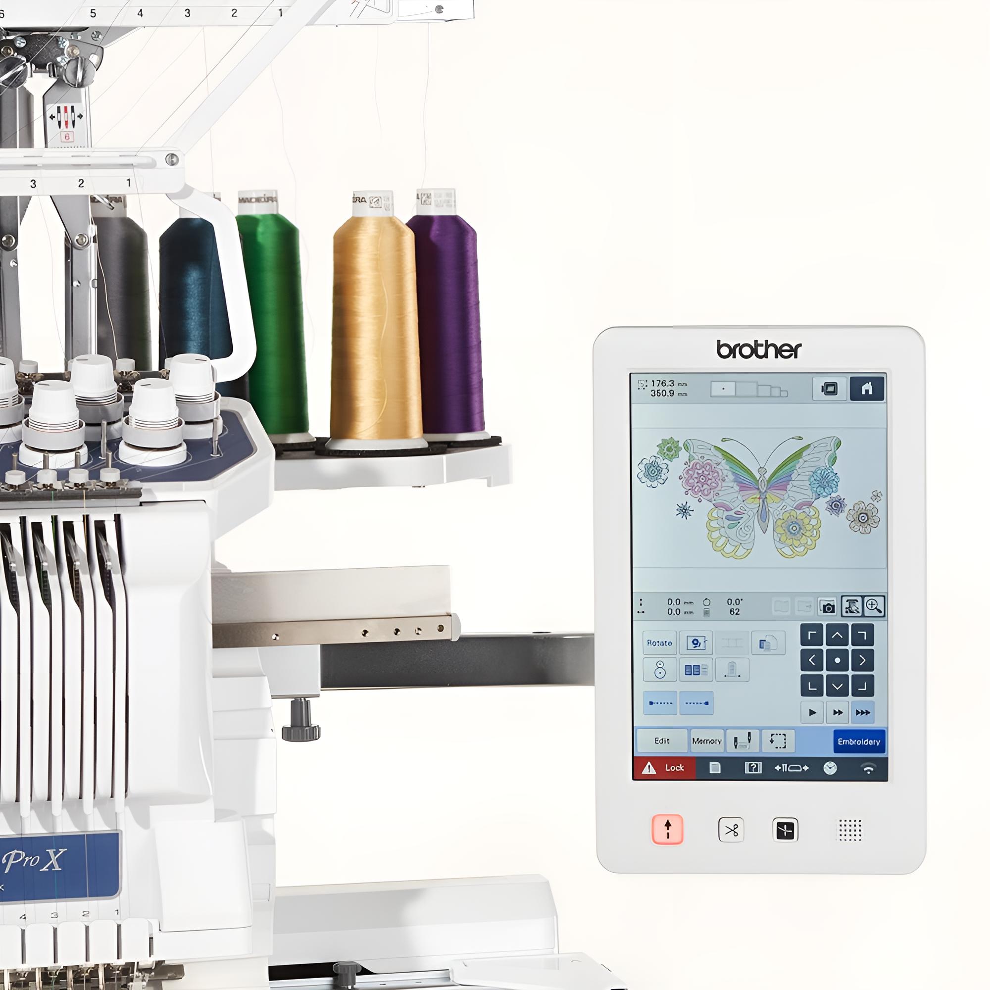Mit der Brother PR 1055X bringen Sie Ihre Stickideen aufs nächste Level – ob für den ambitionierten Hobbybereich oder das gewerbliche Sticken. Zehn Nadeln, eine riesige Stickfläche, eingebaute Kamera, WLAN-Konnektivität, Scanfunktion und ein durchdachtes Zubehörpaket lassen keine Wünsche offen.