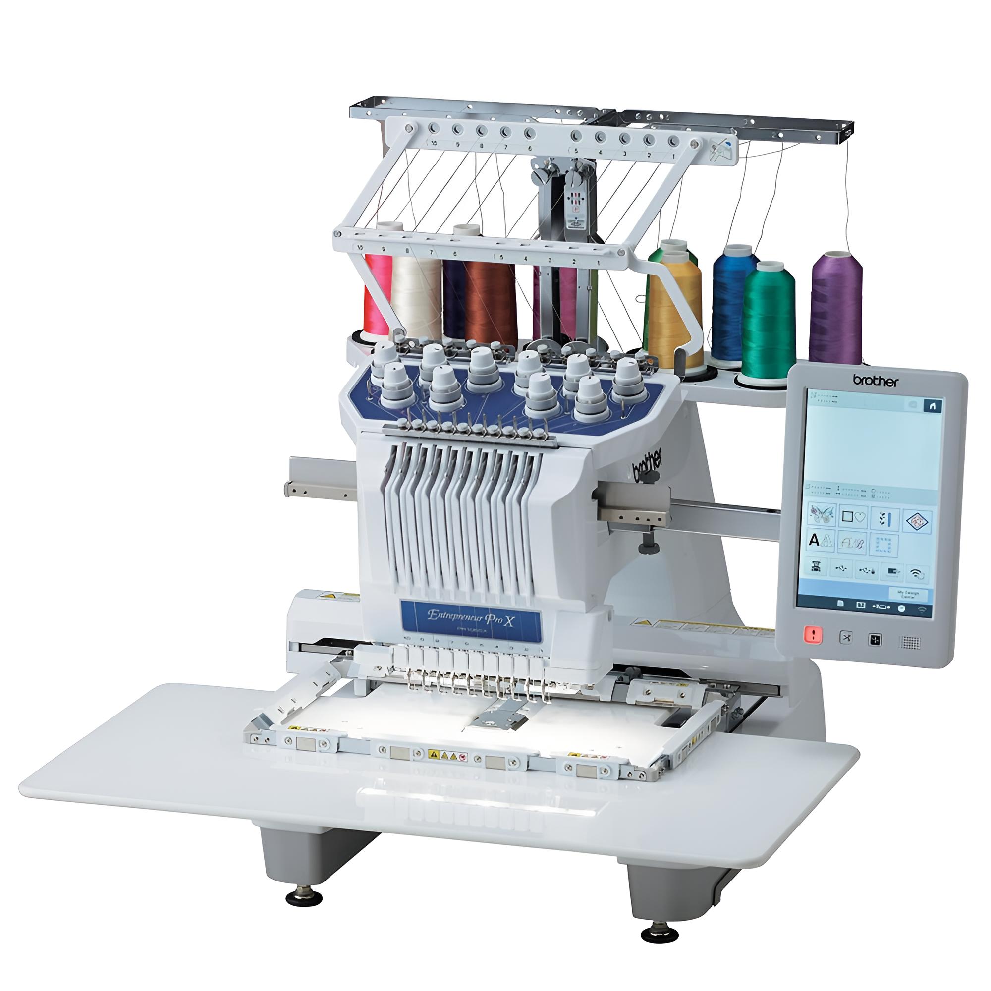 Die PR 1055X bietet zehn Nadeln für multicolor Stickereien, kombiniert mit Kameratechnologie und großem Stickbereich – perfekt für Serienproduktion oder Einzelstücke mit Anspruch.
