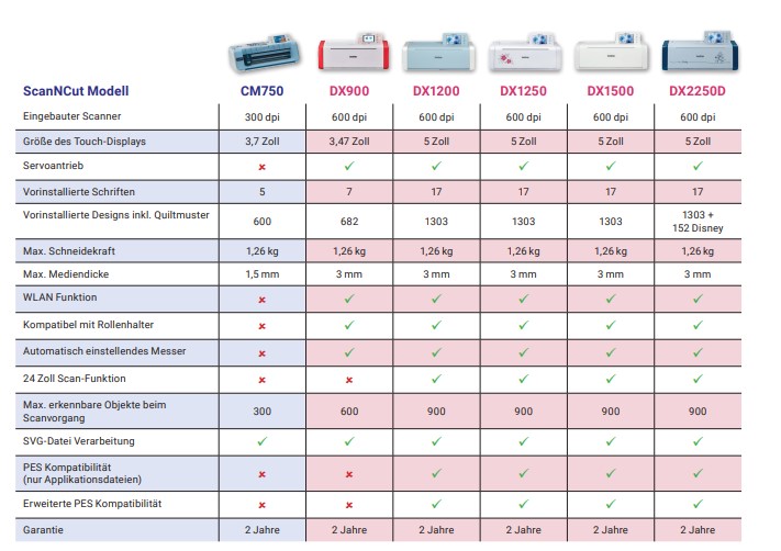 - 1303 einprogrammierte Designs plus 63 Rollmesser-Designs auf Aktivierungskarte