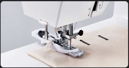 Dank dreistufigem Füßchendruck passt sich die Maschine flexibel an verschiedene Stoffstärken an – ideal für stabile oder elastische Materialien.