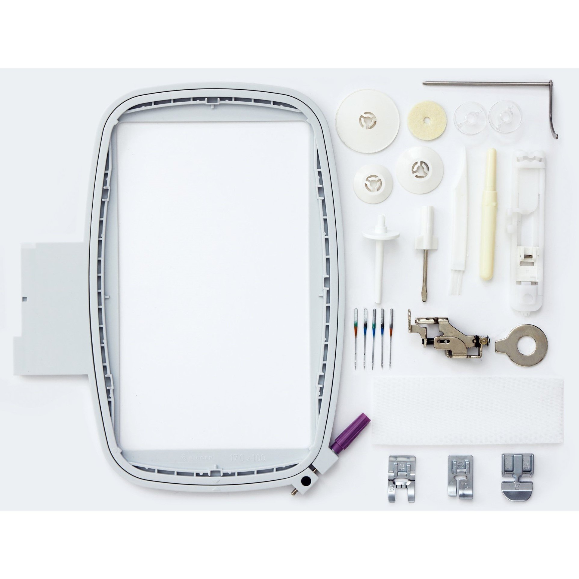 - Optionales Zubehör: 100 x 100 mm & 40 x 40 mm Stickrahmen