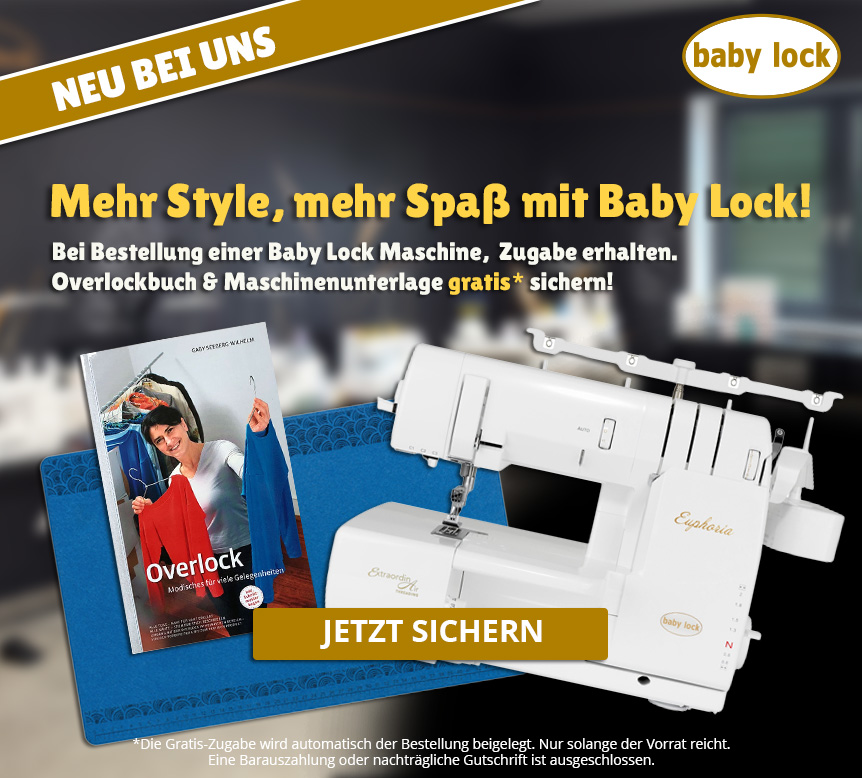 Bei Bestellung einer Baby Lock Maschine, Zugabe erhalten. Overlockbuch & Maschinenunterlage gratis* sichern!